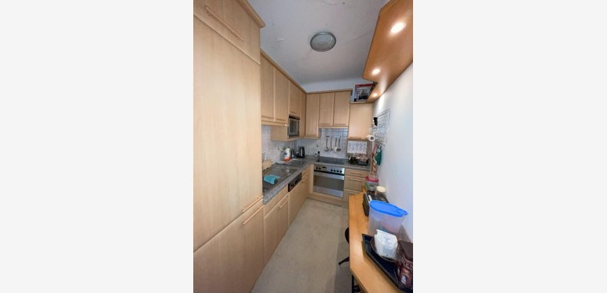 • Küche: Praktisch direkt vom Wohnzimmer erreichbar, ausgestattet mit einer Einbauküche und Geräten.