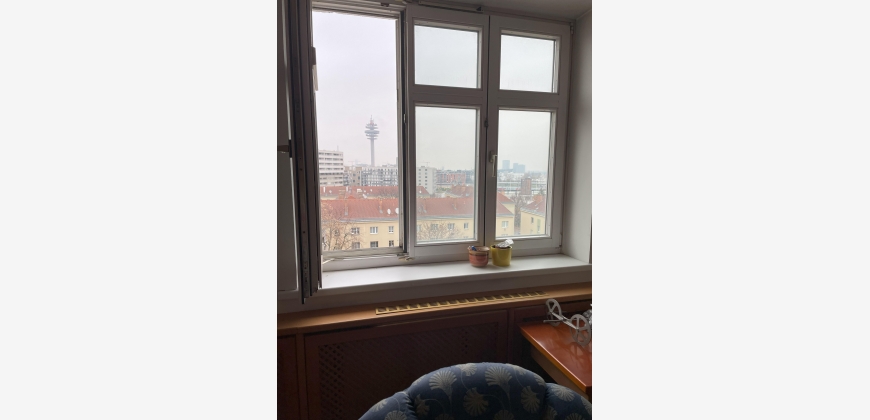 • Wohnzimmer: Großzügig geschnitten und lichtdurchflutet dank großem Fenster, die einen unvergleichlichen Weitblick bieten. Hier genießen Sie die Ruhe oberhalb der Dächer Wiens – uneinsehbar und ideal für gemütliche Stunden.