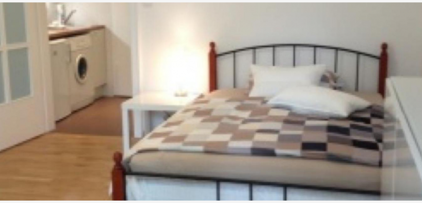 Schrank, Bett, Fernsehtisch, Tisch, Küche mit Herd, Mikrowelle, Kühlschrank, Waschmaschine, Internet vorhanden