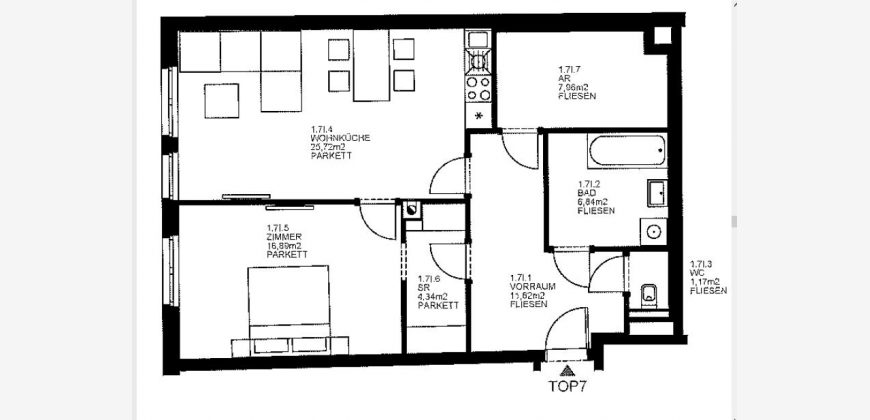 Die ca. 75 m² große Wohnung besticht durch die optimale Raumaufteilung und den privaten Zugang auf das begrünte Flachdach befindet sich im 1 LIFT Stock.
