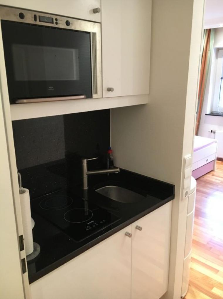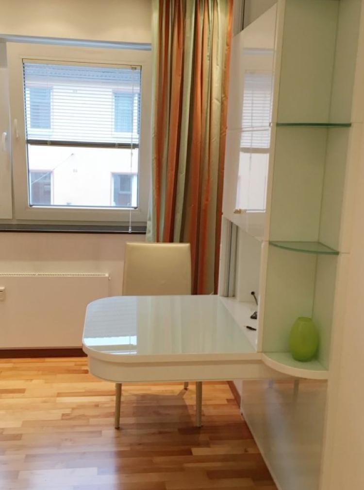 Die Garconniere besteht aus: Wohnzimmer (Parkettboden, eingebauten Wandschränken, ausziehbares Schlafsofa), eingebaute Küche, kleiner Vorraum mit Garderobe, schönes Badezimmer), Kellerabteil und Waschküche im Erdgeschoss.