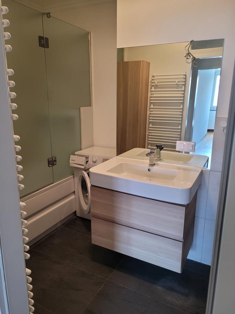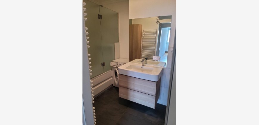 1 living room with direct access to the balcony, 1 bedroom, 1 bathroom with shower cabin and bathtub, washing machine, 1 WC, 1 kitchen and dining room. Apartment partially furnished.