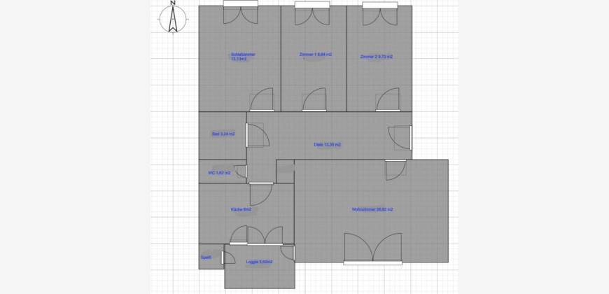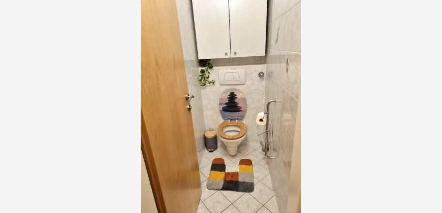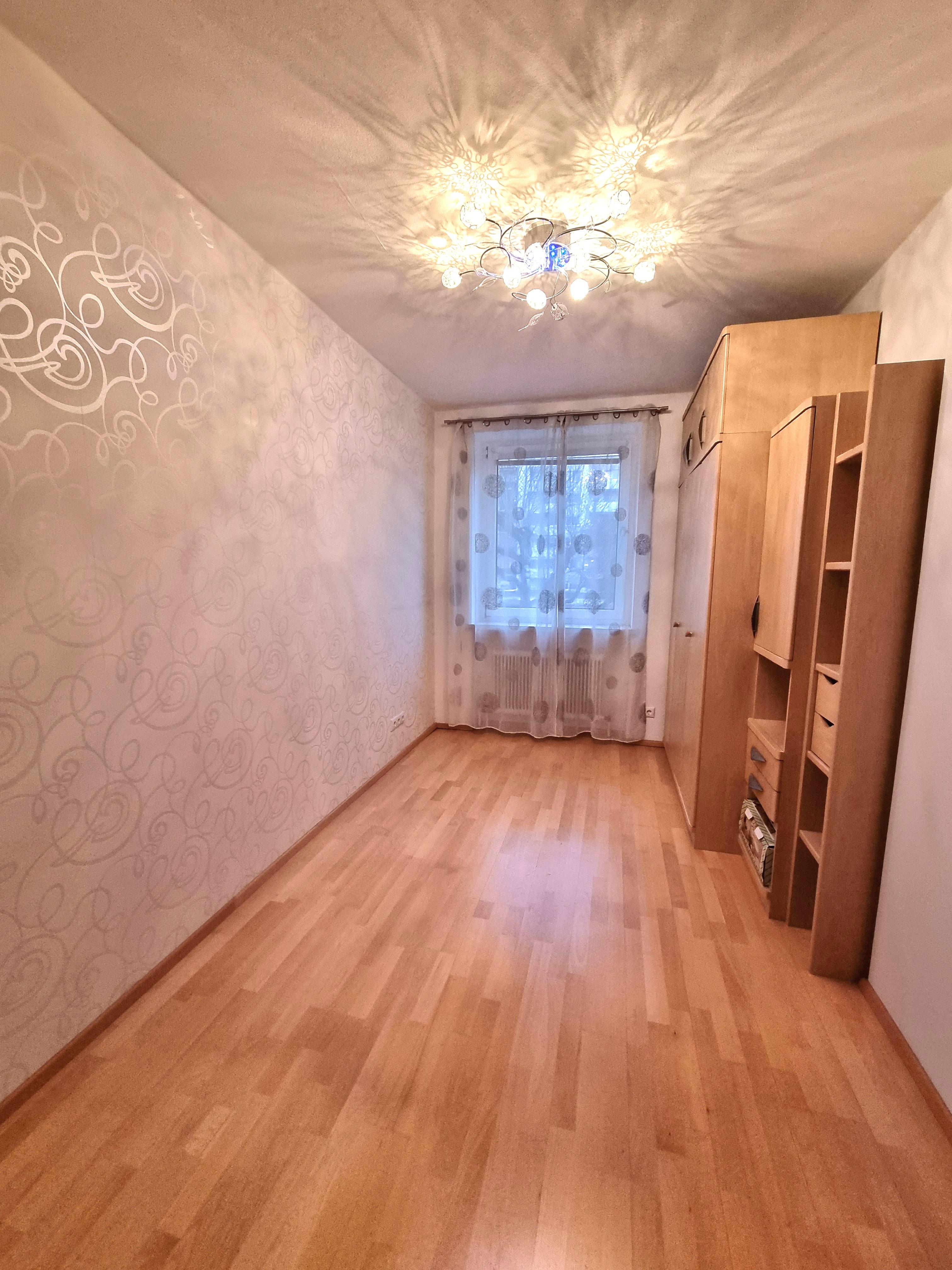 Die helle Wohnung liegt im 1. Stock und ist in sehr gutem Zustand. Sie verfügt über 4 Zimmer: 3 Schlafzimmer und ein großes Wohnzimmer. Zusätzlich gibt es eine Küche (Dan-Küche), ein voll ausgestattetes Bad mit Badewanne und Duschvorrichtung, ein separates WC, einen Vorraum, eine Speis und einen 5,6 m2 großen Balkon.