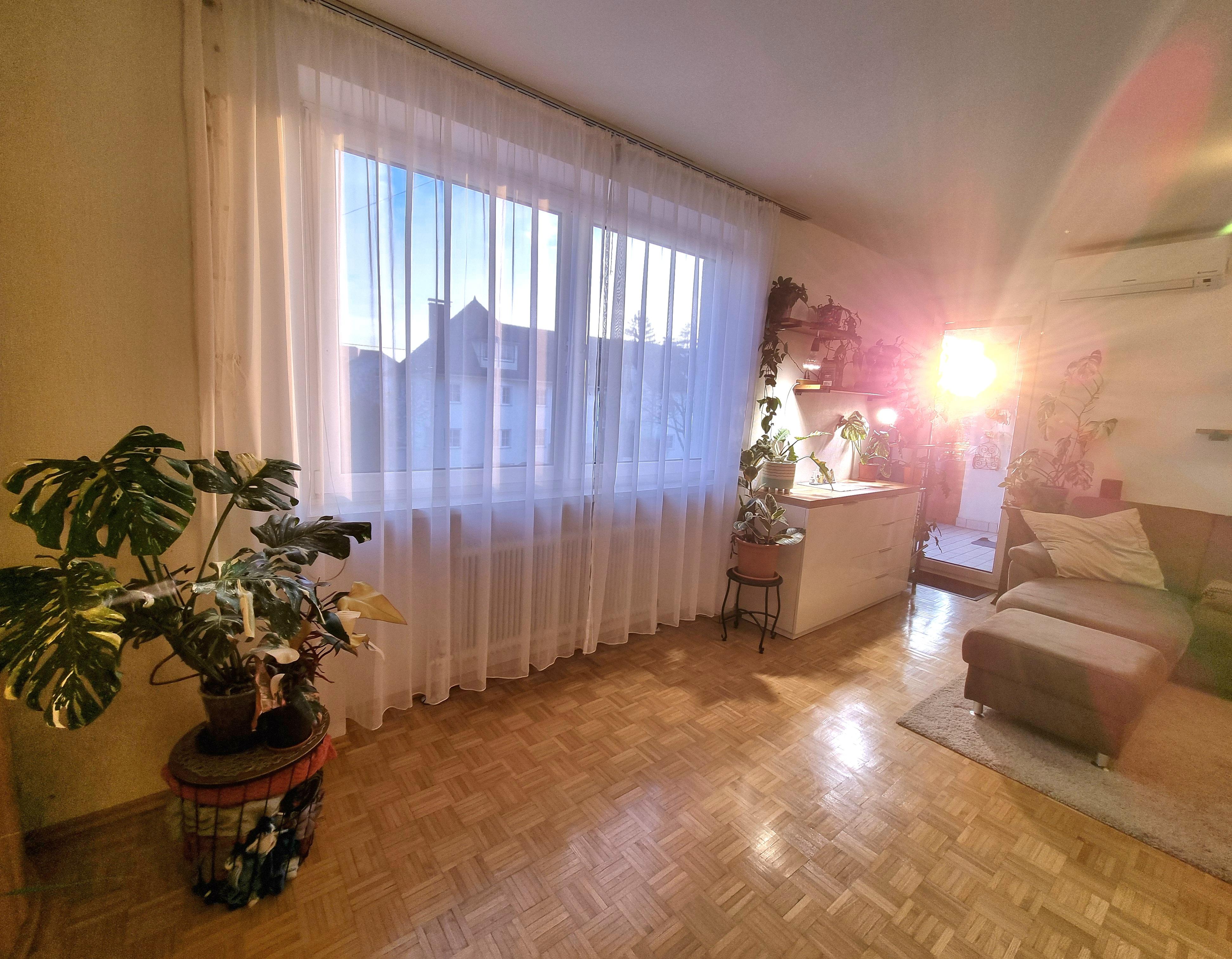 Die Wohnung befindet sich direkt in Linz und doch in ruhiger Umgebung mit Blick auf Einfamilienhäuser, viel Grün und den Neuromedcampus.