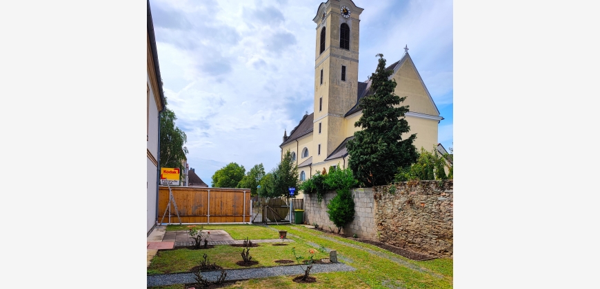 Die Gesamtfläche des Grundstücks beträgt 344 m2. Der private Garten ist klein, es wachsen einige Rosen, Beete warten auf einen neuen grünen Daumen - eine alte hohe Steinmauer grenzt an. Durch den Hof gibt es neben dem Garten eine gemeinsame Einfahrt, auch zum hinteren Haus. Derzeit wird der private Gartenbereich mit einem Zaun neu definiert. Eine grüne Bepflanzung obliegt dem neuen Besitzer.