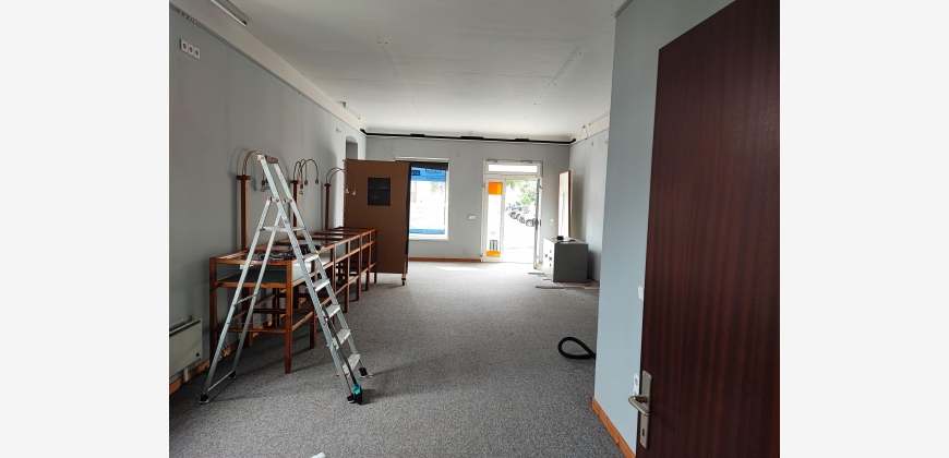 Der Geschäftsbereich mit ca. 70 m2 wurde zuletzt als Fotostudio – Juweliergeschäft geführt, die Wände sind farblich in hellem Grau darauf abgestimmt. Es gibt im Erdgeschoß einen weiteren hinteren Raum „Küchenraum“ mit Waschbecken, ein WC und einen separaten hinteren Eingang, der in den Garten führt.
