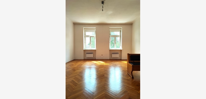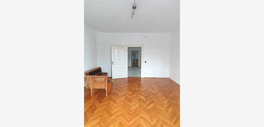 Durch eine zweite Eingangstüre im Hof gelangt man in den Privatbereich im ersten Stock. Der Wohnbereich mit weiteren ca. 70 m2 ist mit Fliesen, einem Holzboden und einem traumhaften Parkettboden ausgelegt. Die Einbauküche ist praktisch mit einer kleinen Speis ergänzt, das Badezimmer und das WC getrennt. Die Altbauräume wirken nobel, sind frisch gemalt, luftig hoch und hell. Alle Zimmer haben Außenrollos.