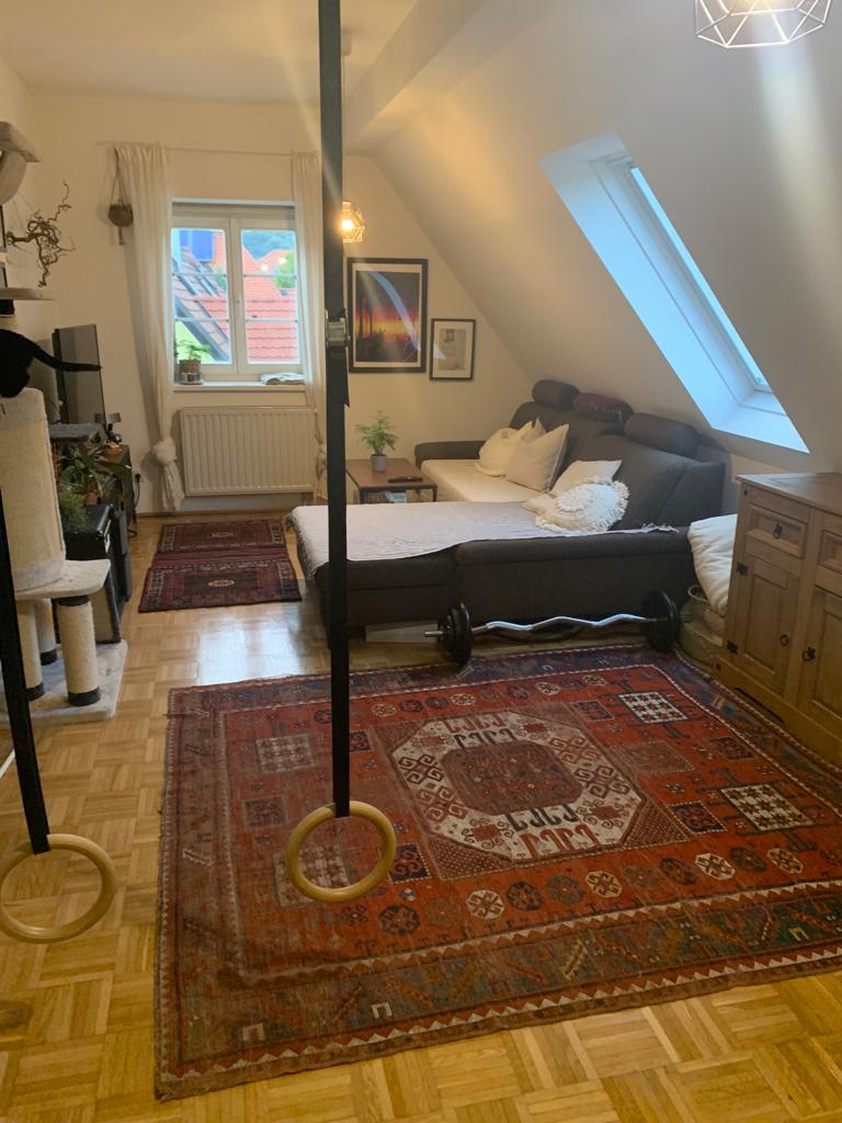 Sehr gemütliche Dachgeschosswohnung mit Küche inklusive Geschirrspühler zu vermieten ab sofort. Diese befindet sich in der Nähe der Endhaltestelle Wetzelsdorf. Sehr ruhig gelegen in einer Seitenstraße (Wohnstraße). Parkplätze sind in der Umgebung viele vorhanden (keine Zone).
