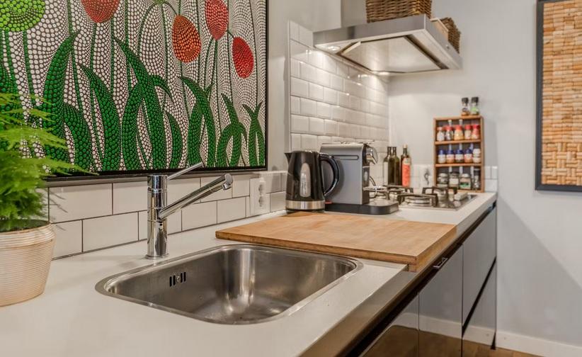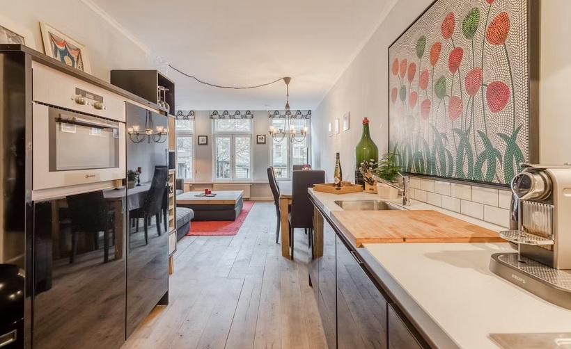 • Voll ausgestattete Küche (Kühlschrank, Gemüsefach, Geschirrspüler, Backofen und Gasherd mit 4 Kochfeldern)
