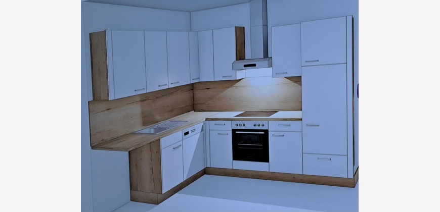 Bad mit Waschtisch und Spiegelschrank, Badewanne und Glasduschwand. Neue Küche mit Geräten ohne Ablöse! Waschmaschinenanschluss in der Küche vorhanden.