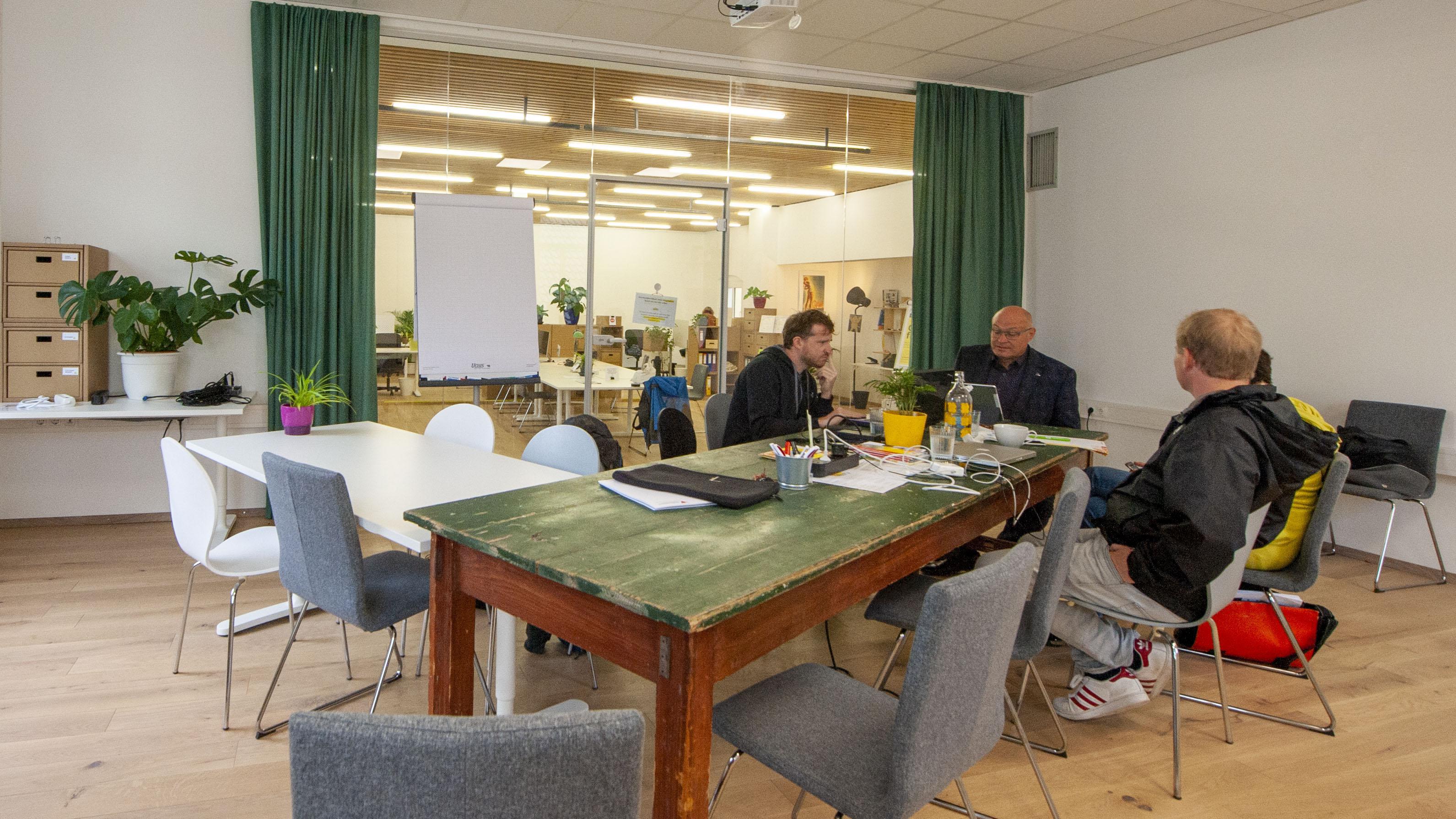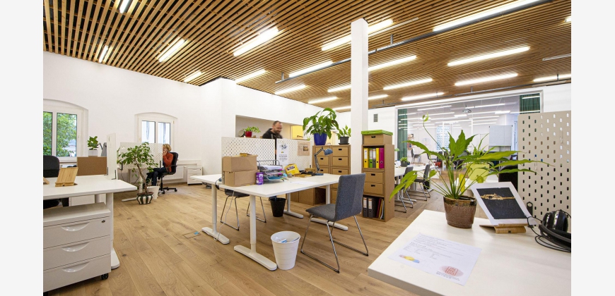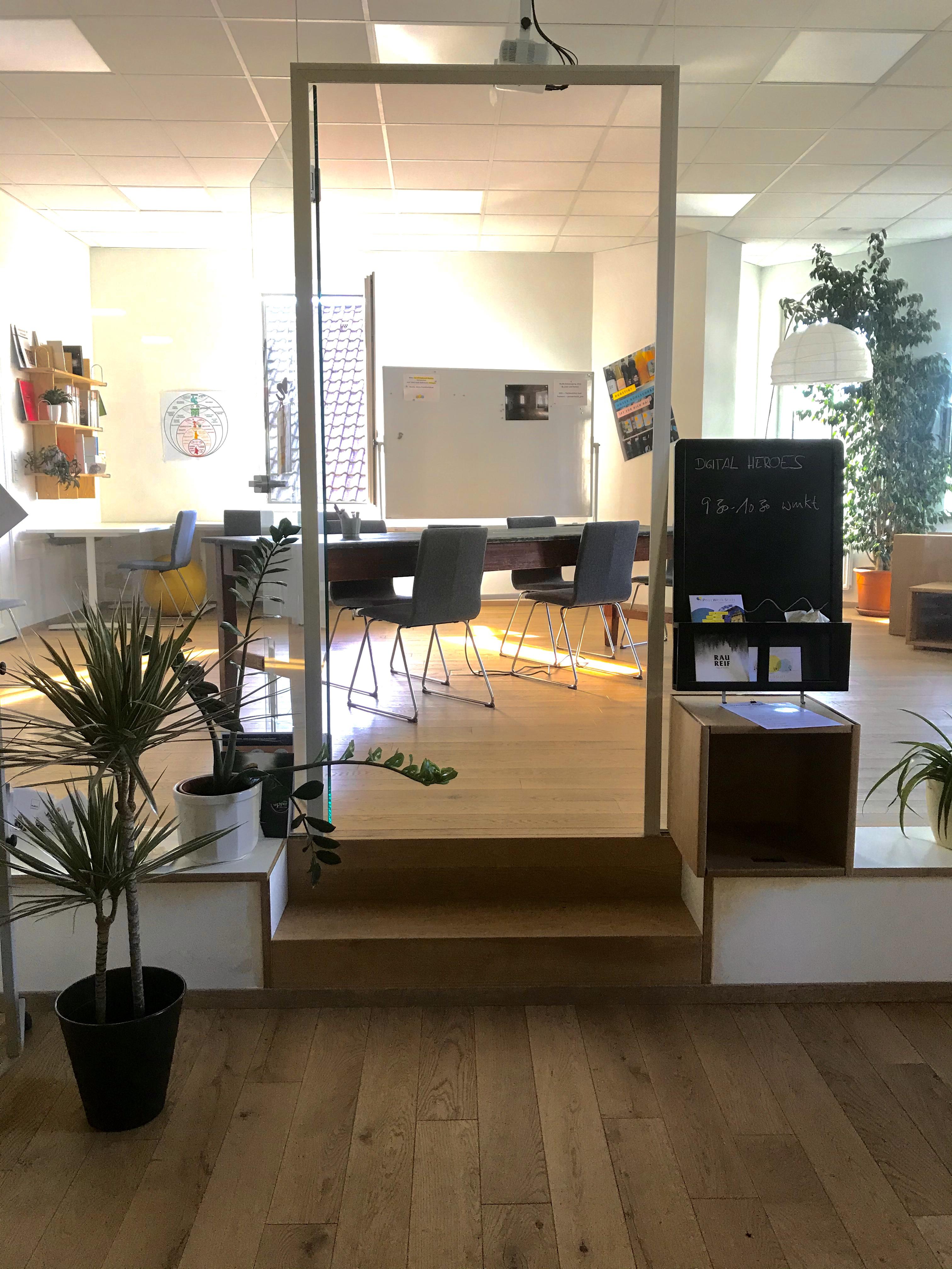 Angesiedelt im Altbau des Gasthauses zur Post wurden die Büroräume 2019 kernsaniert und mit neuem, hellem Vollholzboden, Möbel von papplab, höhenverstellbaren Tischen & Drehstühlen versehen.
