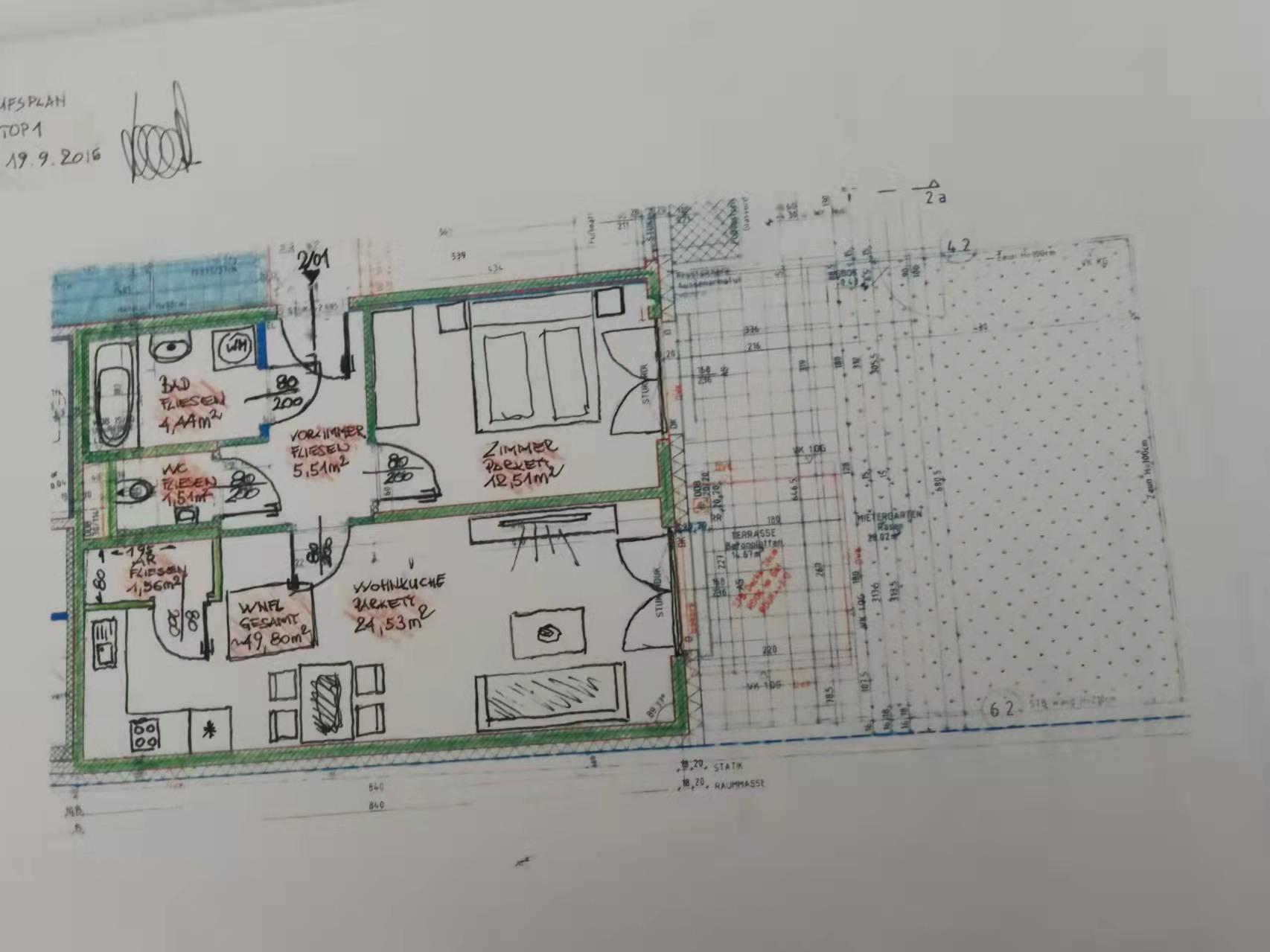 In den Zimmern wurde ein Parkettboden mit Fußbodenheizung verlegt, der Sanitärbereich Badezimmer & WC sind mit hochwertigen Fliesen versehen.