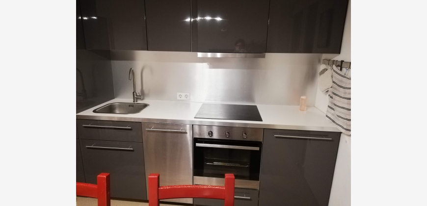 Die Küche ist mit einer Kühl-/Gefrierkombination (kleines Gefrierfach), einem Herd mit Ceranfeld, einem Geschirrspüler und einer Waschmaschine ausgestattet.