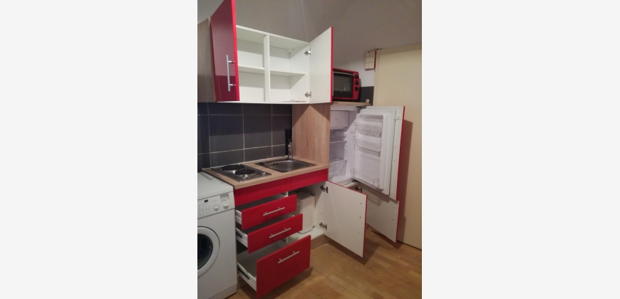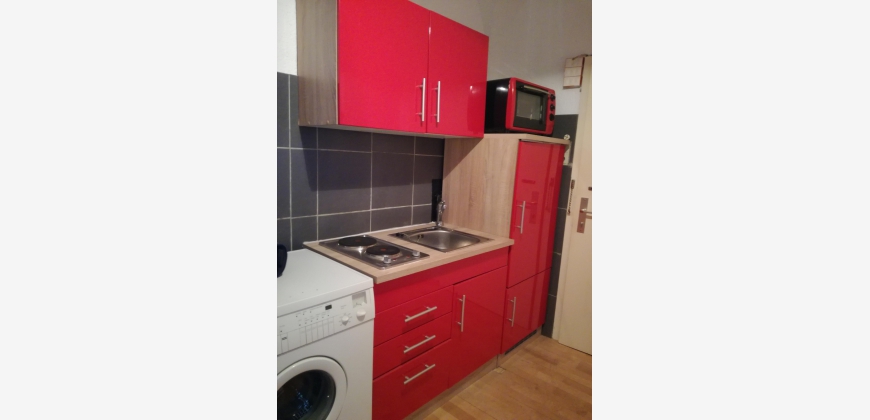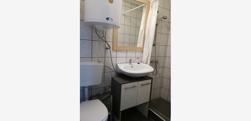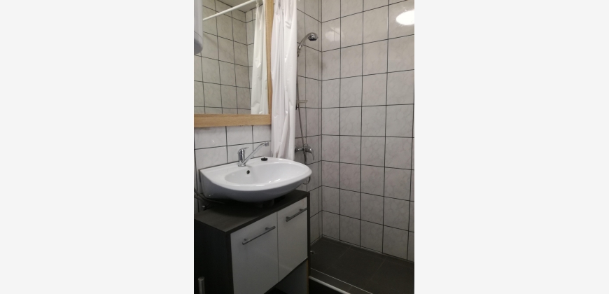 Die Wohnung ist mit einer kleinen Küchenzeile ausgestattet (Kühlschrank, 2er Kochfeld, kleiner Backofen inkl.), das Badezimmerverfügt über eine Dusche und WC.