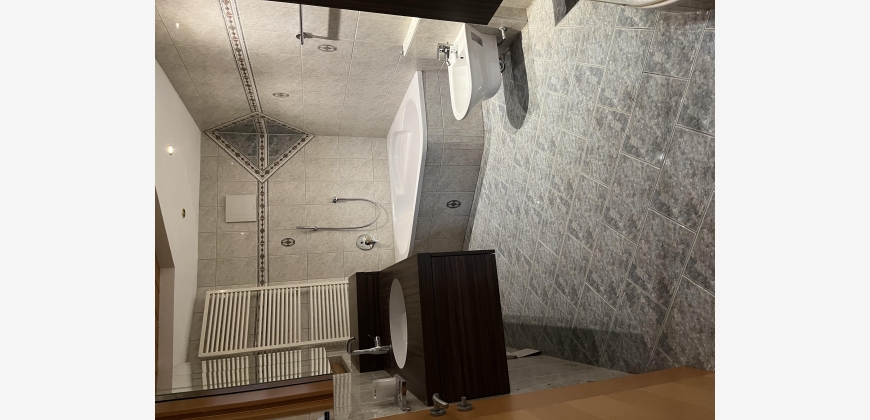 Das Badezimmer ist voll ausgestattet und möbliert.