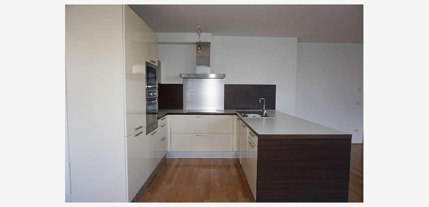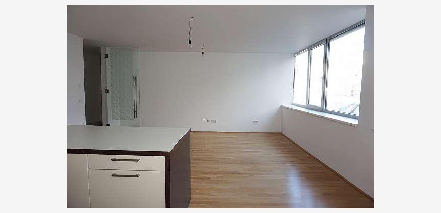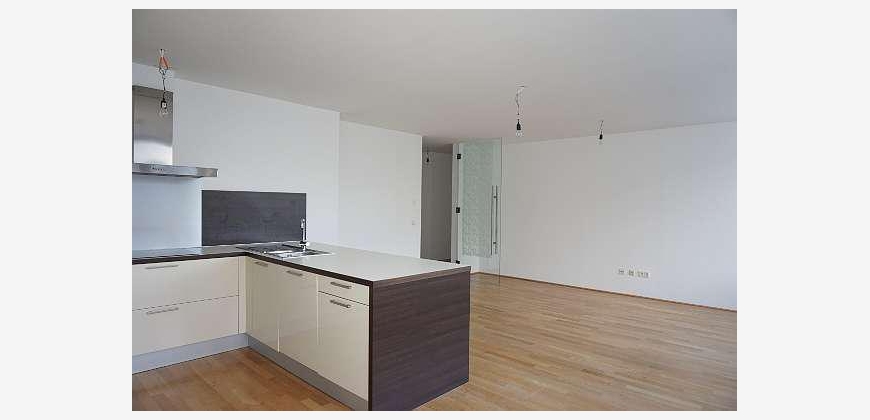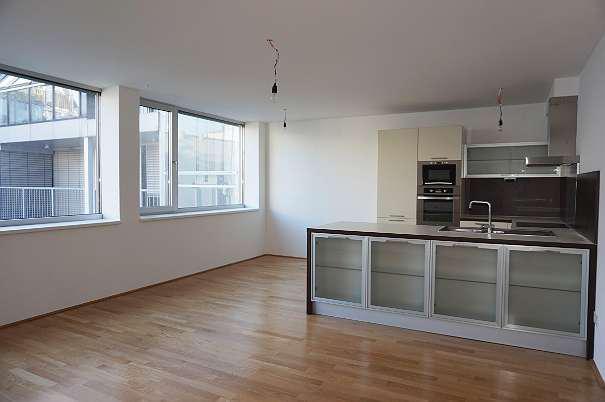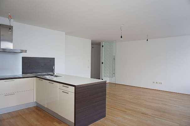 Wohnküche, Schlafzimmer, Badezimmer, separate Toilette, Vorraum. - Parkettböden (Eiche) in allen Aufenthaltsräumen und in der Küche - Verfliesung der Nassräume - exklusive Designerküche inkl. E-Herd, Dunstabzug, Kühlschrank, Tiefkühler und Geschirrspüler - modernes Badezimmer mit Badewanne, 2 Waschbecken, Handtuchtrockner und Waschmaschinenanschluss - elektrische Jalousien - Fußbodenheizung: Fernwärme