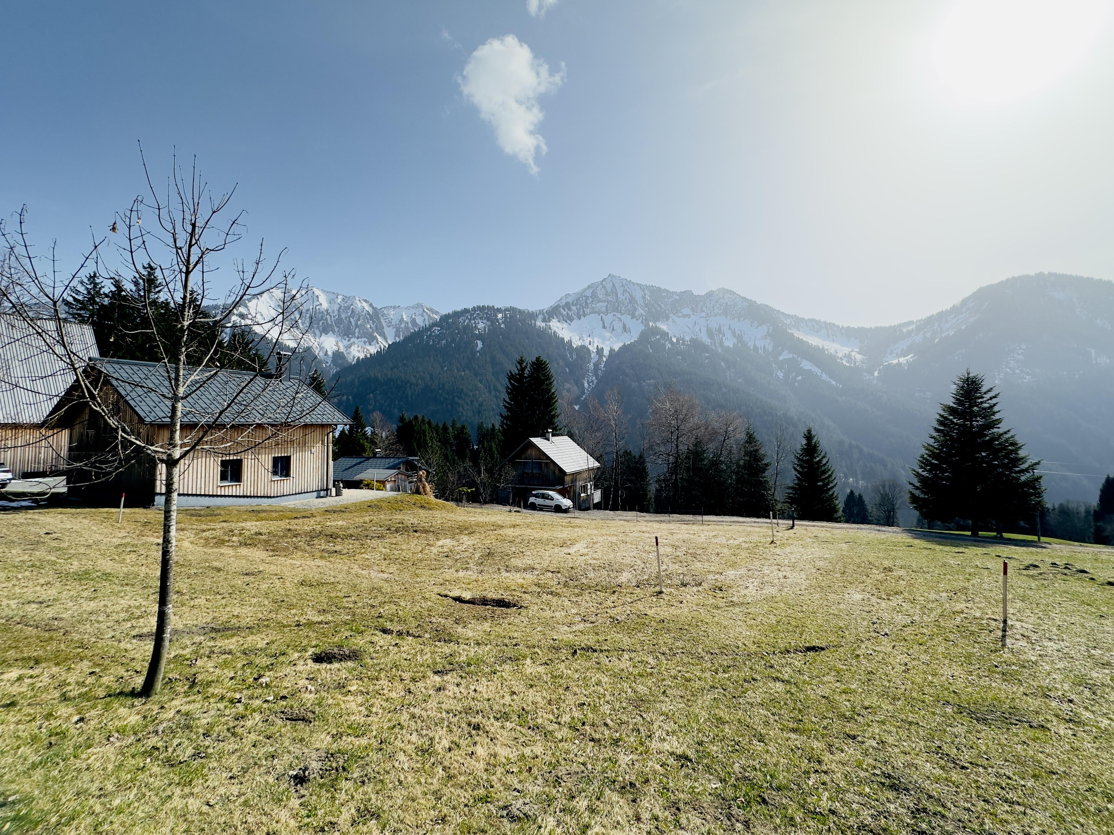 Das Grundstück ist ganztägig sonnig und bietet einen traumhaften Blick in die umliegende Bergwelt ideal für alle, die Erholung in der Natur suchen.