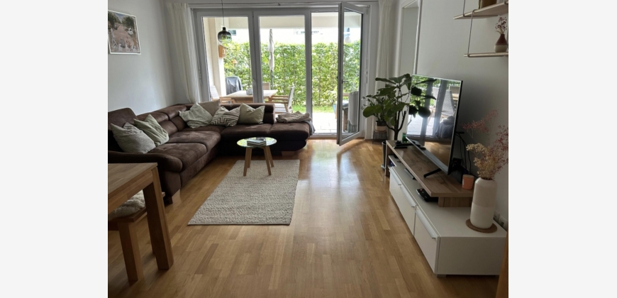 Diese geräumige Wohnung besticht durch ein großes Wohnzimmer, das sowohl einen Wohn- als auch einen Essbereich bietet und direkten Zugang zum charmanten Garten mit Terrasse ermöglicht.