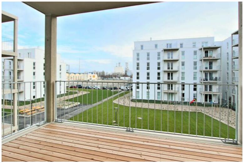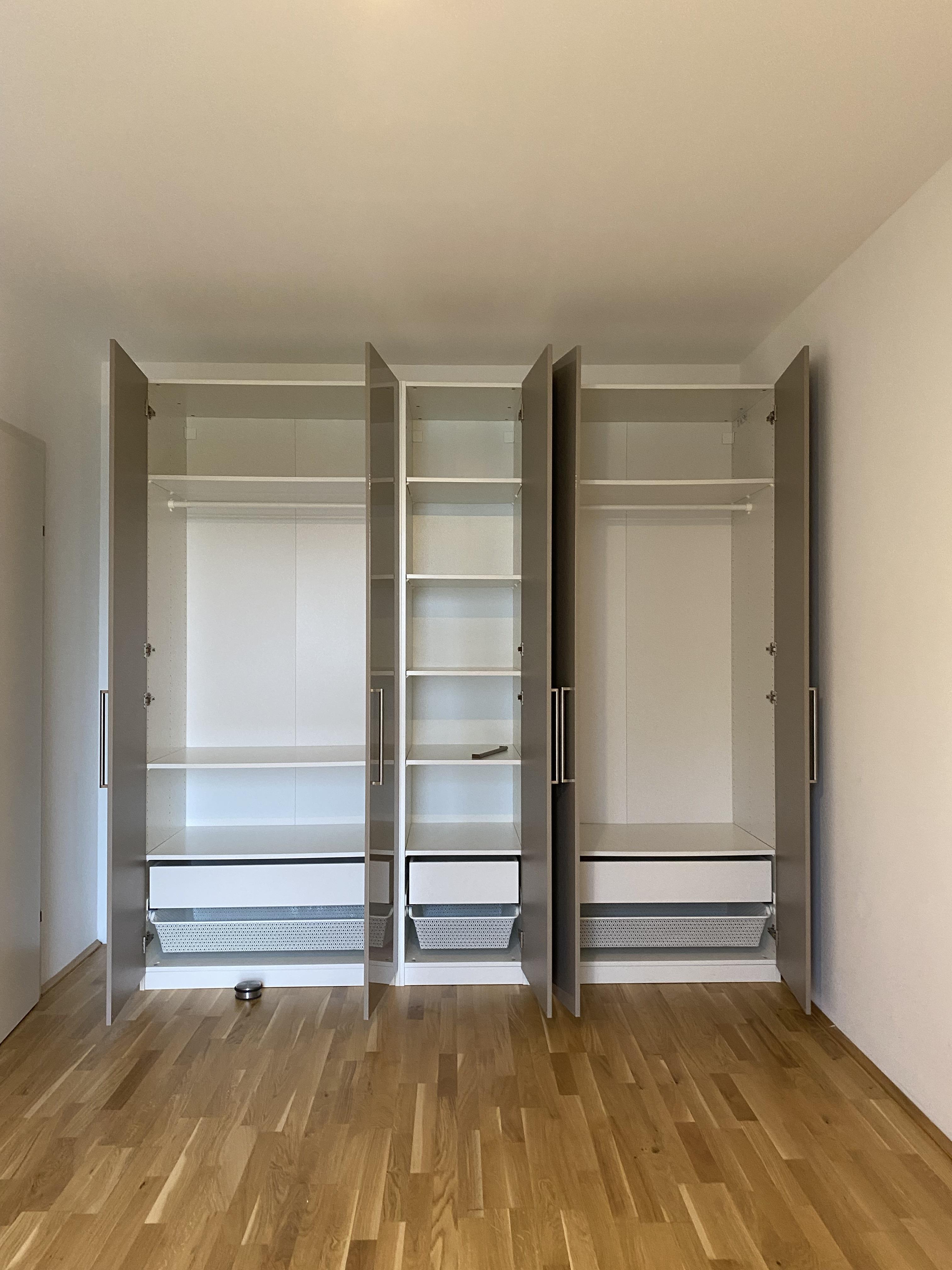 Die beiden Schlafzimmer sind praktisch geschnitten und dank der bodentiefen Fenster wunderbar lichtdurchflutet. Eines der Zimmer verfügt zusätzlich über einen modernen, großzügigen Kleiderschrank. Der offen gestaltete Wohnbereich mit integrierter Wohnküche lädt zum Wohlfühlen ein und ist mit einer voll ausgestatteten Einbauküche versehen.