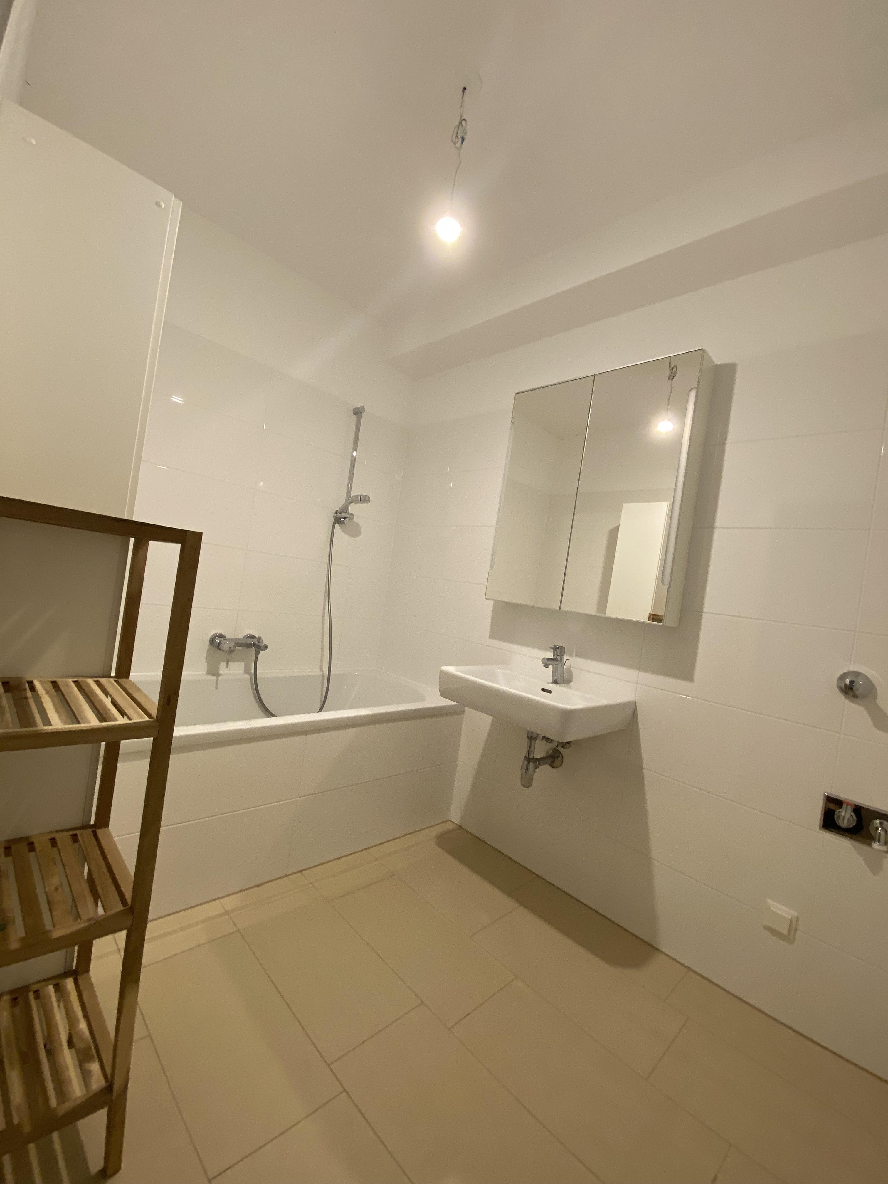 Das Badezimmer punktet mit einer Badewanne, einem Handtuchheizkörper und einem Spiegelschrank. Ein großer Abstellraum sorgt für zusätzlichen Stauraum. Die Wohnung wird langfristig für 10 Jahre (oder länger) vermietet und bietet folgende attraktive Ausstattungsmerkmale: