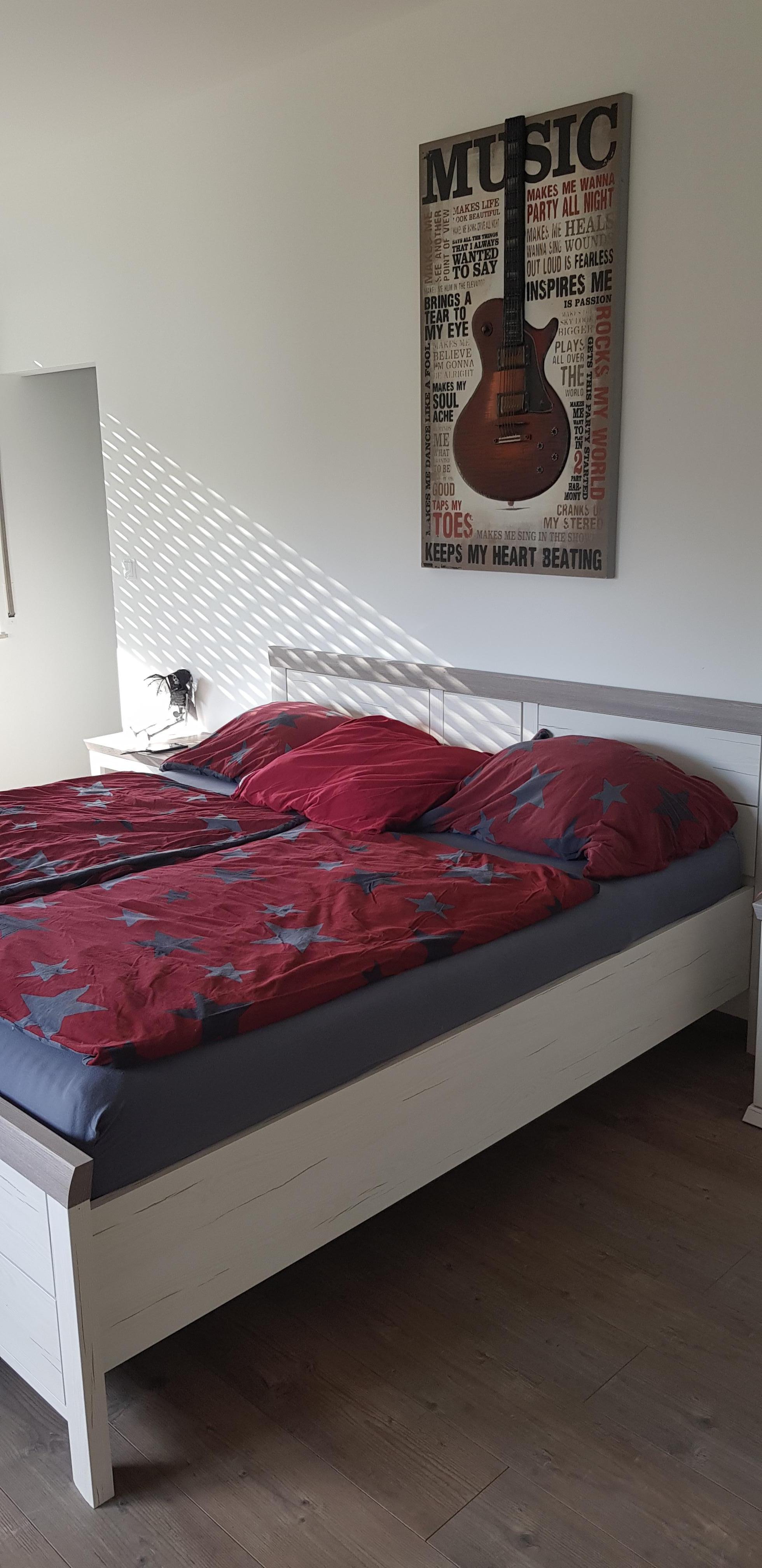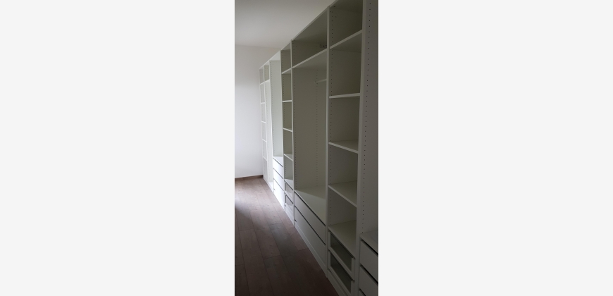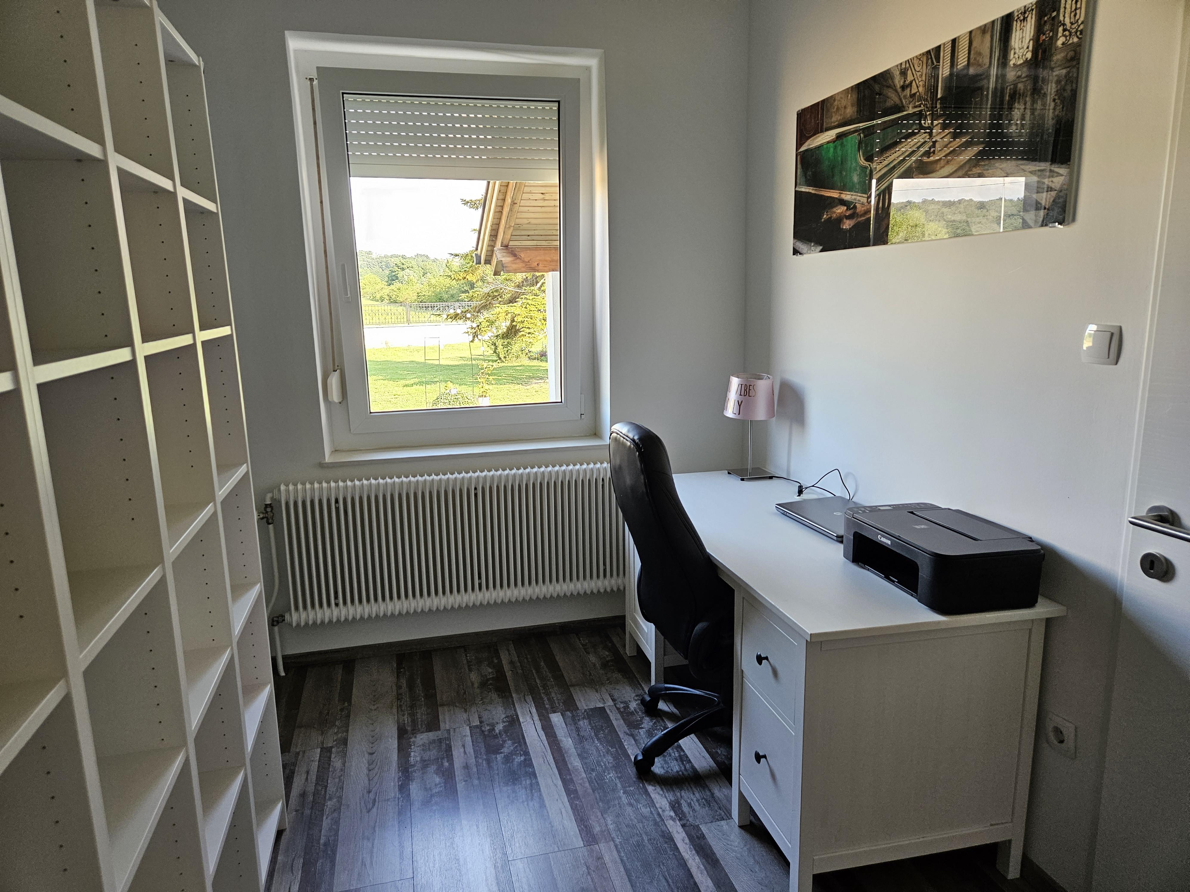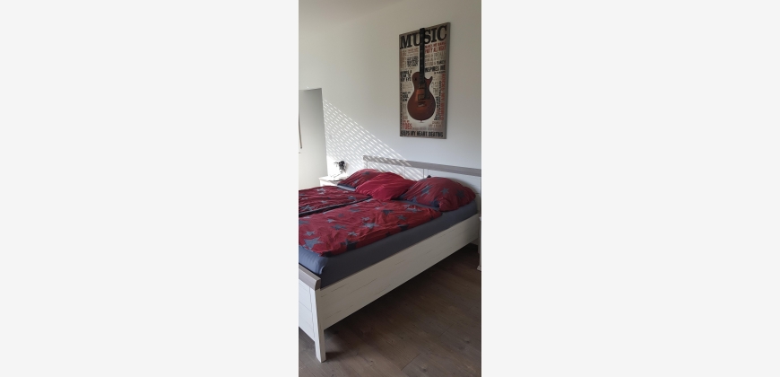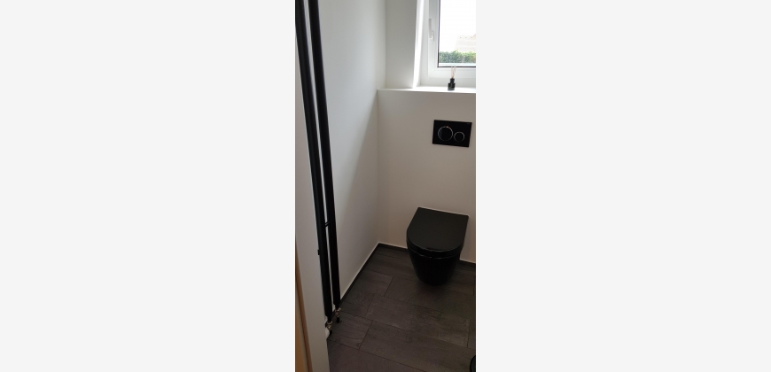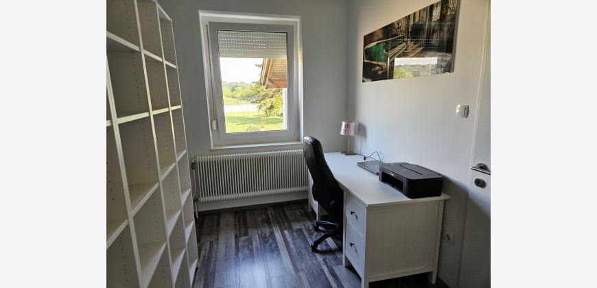 Das Erdgeschoss ist aufgeteilt in Wohnzimmer, Schlafzimmer mit begehbaren Kleiderschrank, Kinderzimmer, Küche, Esszimmer, Badezimmer und getrenntem WC.