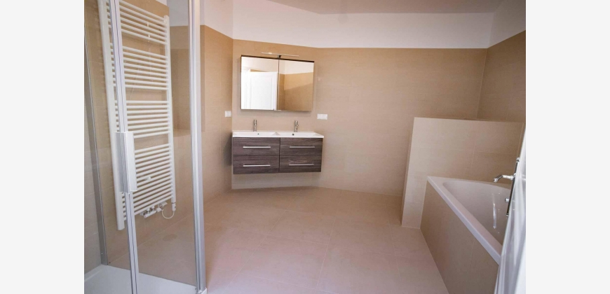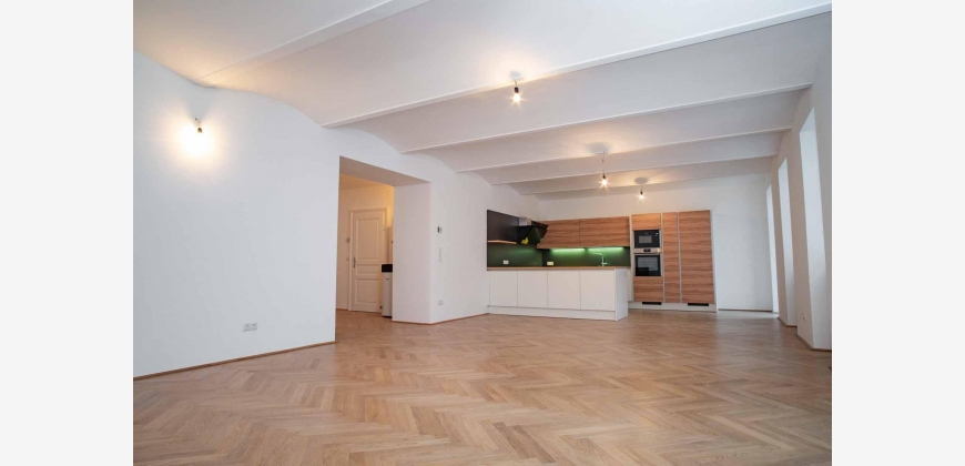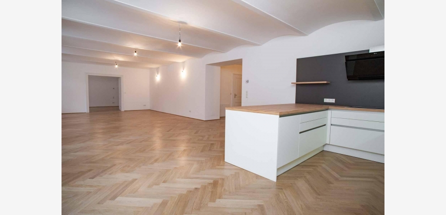 Die Wohnung besteht aus einem 60 m² großen Wohnraum mit Wohnküche samt allen erforderlichen Geräten (Backrohr, Kühl-Gefrier-Kombination, Mikrowelle, Ceran-Kochfeld, Geschirrspüler, Dunstabzug), drei weiteren Wohnräumen, einem voll eingerichteten Fliesenbad samt Dusche und Badewanne mit WC, einem weiteren separaten WC. Sämtliche Wohnräume sind mit Eichenparkett ausgestattet. Jedes Zimmer verfügt über eine indivduelle Fußbodenheizung (Gastherme) mit Thermostat.