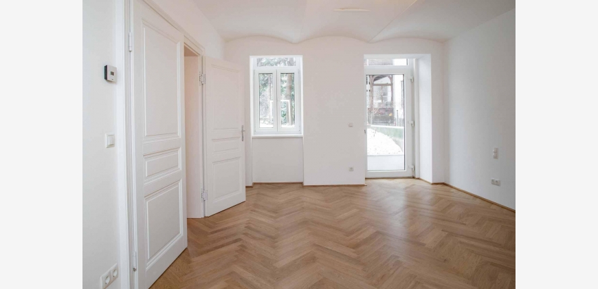 Wunderschöne komplett renovierte 145 m² große Souterrain- Wohnung mit 200 m² Garten zur alleinigen Nutzung in 1180 Wien, in Jugendstilhaus direkt am Schubertpark.