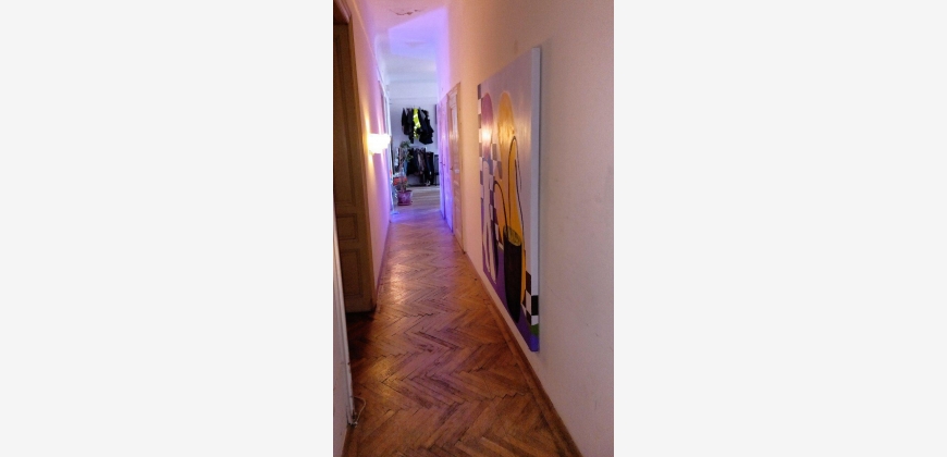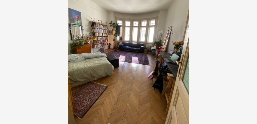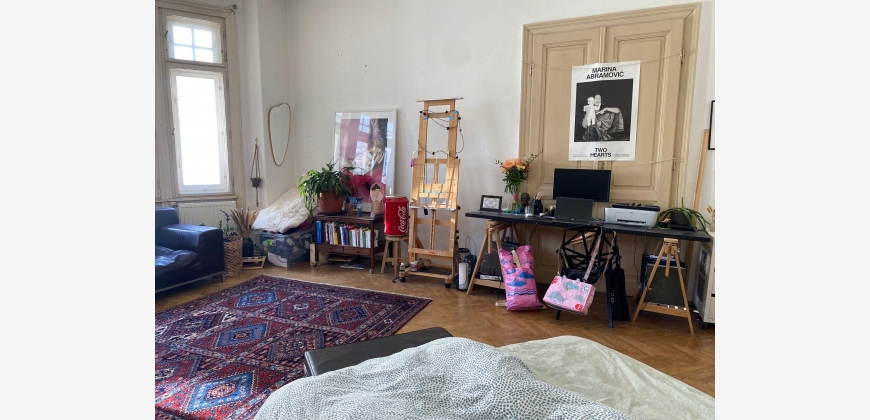 We rent a 30m² room and 3m² of a shared hobby/storage room in a large shared flat (192m²) in the middle of the seventh district. The apartment is an old building with typical high walls, large windows and herringbone parquet flooring. Your room has a large row of windows that provide plenty of natural light. We also have a 5th spare room available apart from yours, but we don't want to rent it out at the moment because it's simply more comfortable with four people. We would therefore share the rent for the 12m² room with the four of us and use it as a hobby and/or storage room.