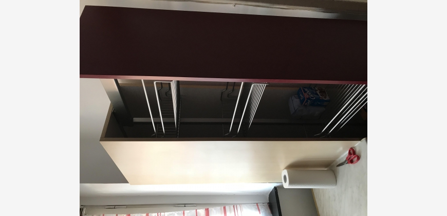 36m2 im 5. Stock (Lift, keine Wohnung darüber) mit folgenden Zimmern: Wohn-/Schlafzimmer, Küche (möbliert, Gasherd), Vorzimmer, Bad, WC, Abstell-/Schrankraum, Balkon in den Innenhof, Kellerabteil;