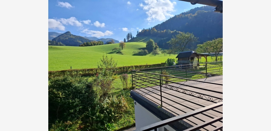 Das Obergeschoß hat 110 m² Wohnfläche befindet sich auf einem etwa 2000 m² großen Grundstück mit riesen Garten und Trampolin in Großraming. Das vollständig möblierte Obergeschoß verfügt über insgesamt 7 Zimmer, 1 Doppelbett, 4 Einzelbetten, 2 eingerichteten Küchen mit 2 Kühlschränken, 1 Gefrierschrank und 2 Herden und eine etwa 88 8 88m² große möblierte Terrasse. Die Garage und Waschküche mit Miele Trockner und Waschmaschine können gerne mitverwendet werden.