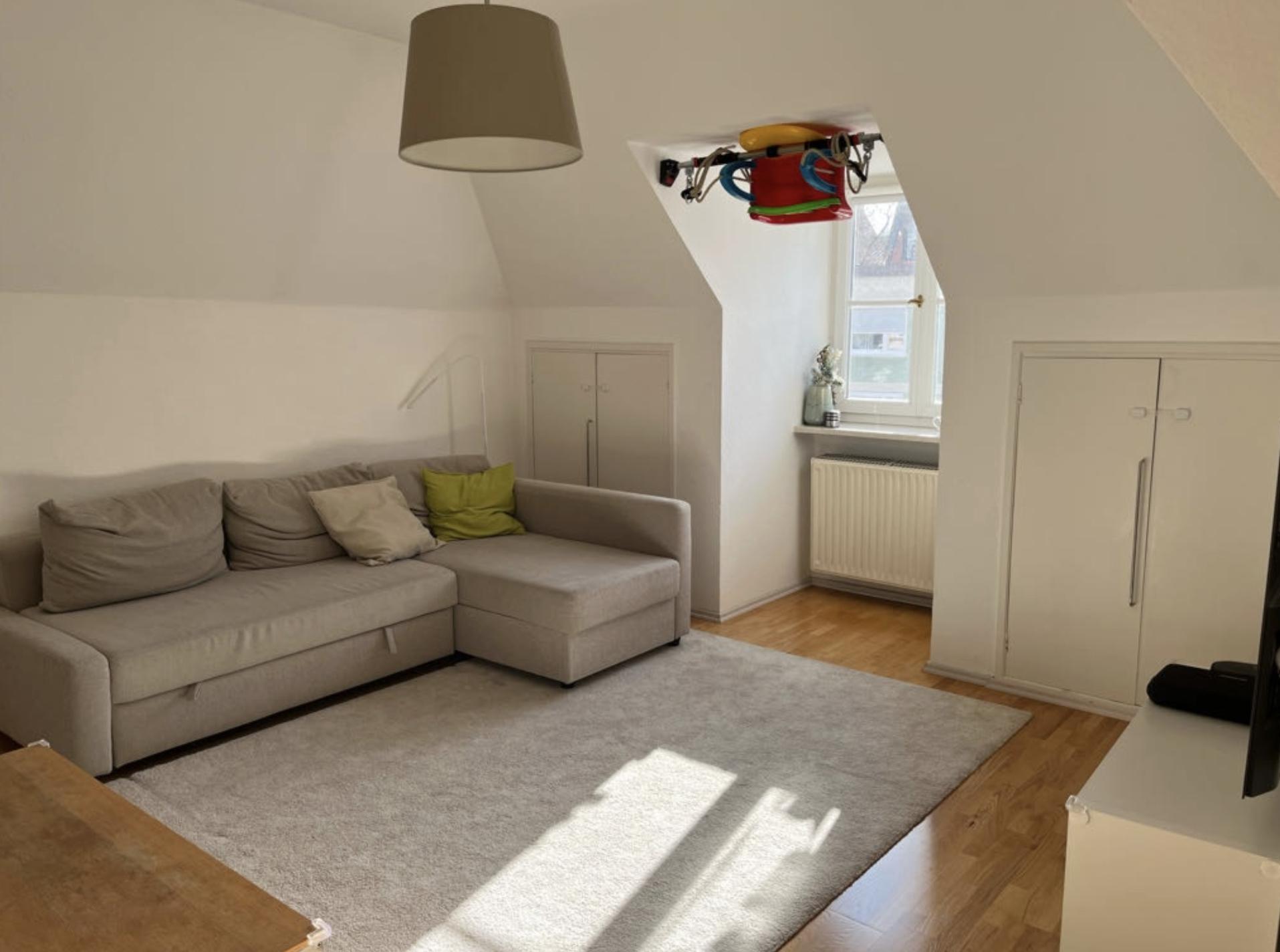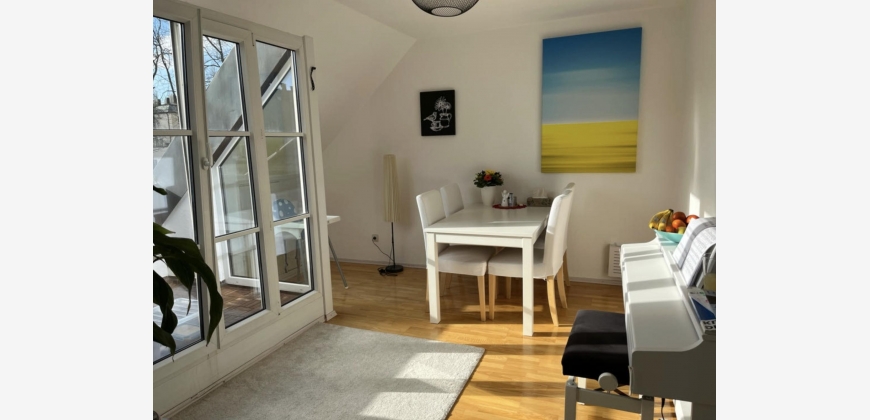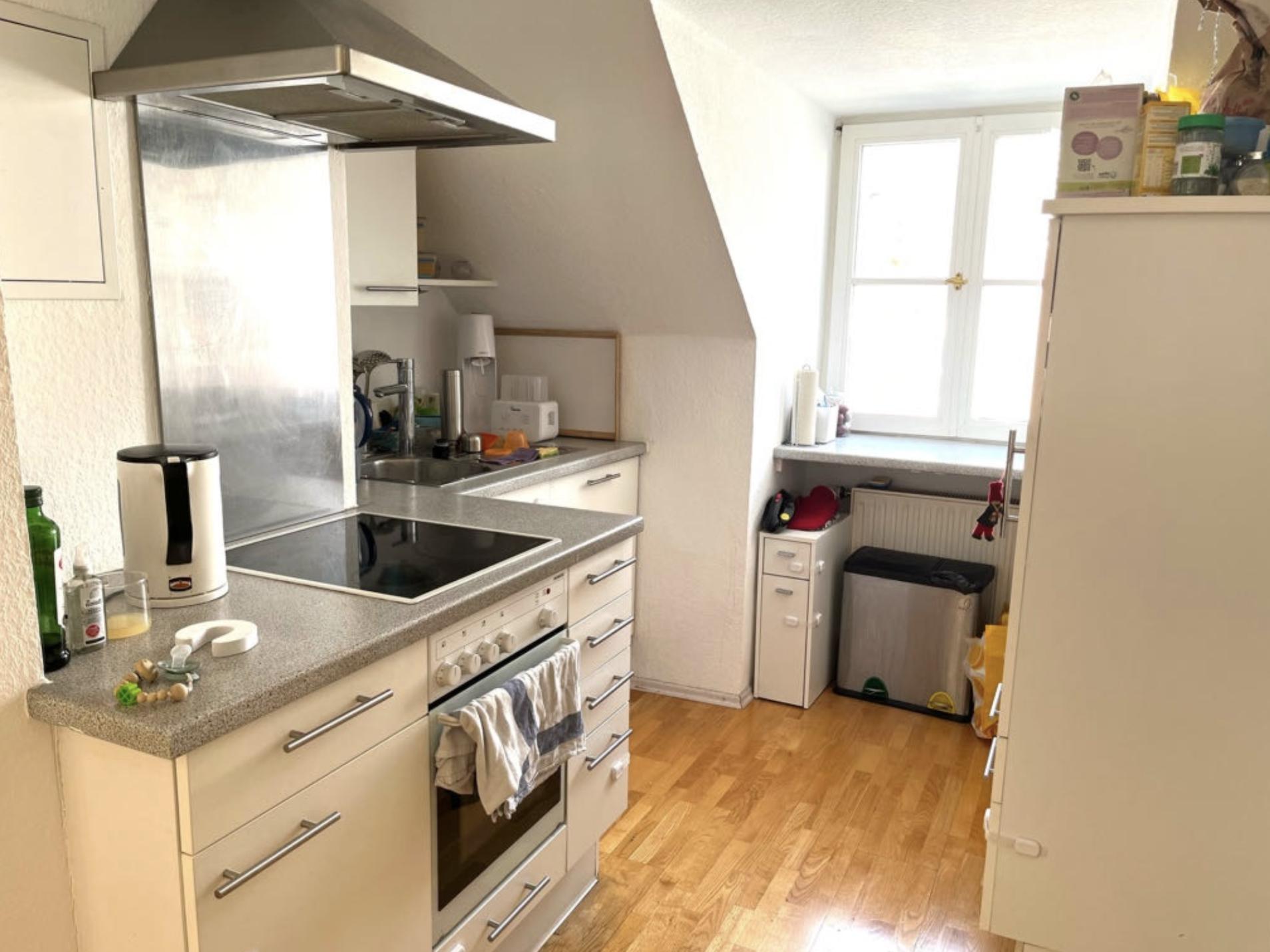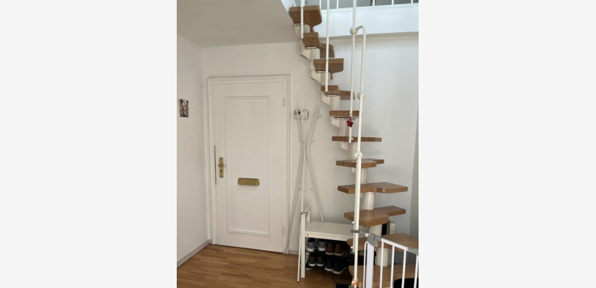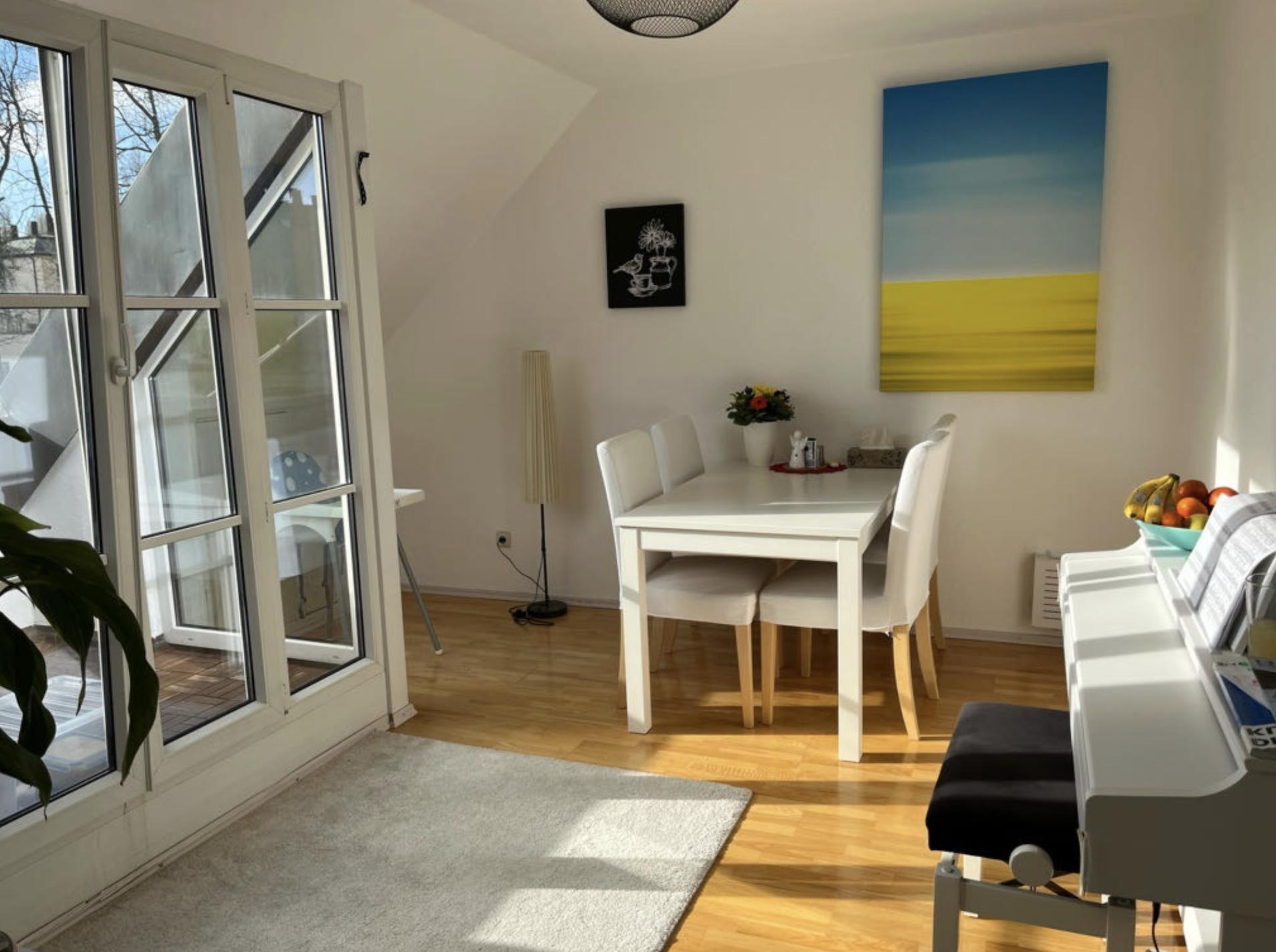 Die charmante Wohnung im Dachgeschoss verfügt über eine vollständig ausgestattete Einbauküche, ein gut beleuchtetes und schönes Badezimmer mit Badewanne und Dusche (weiß verfließt), ein sonniges Esszimmer mit Terrassen-Balkon sowie ein Wohn- und Schlafzimmer. Die Einrichtung ist modern, gemütlich und entspannend und bietet eine atemberaubende Aussicht. Auf Wunsch kann ein Großteil der Möbel übernommen werden. Die Ablöse würde ca. 580€ betragen. Auf 5 Jahre mit garantierter Verlängerungsoption befristet.