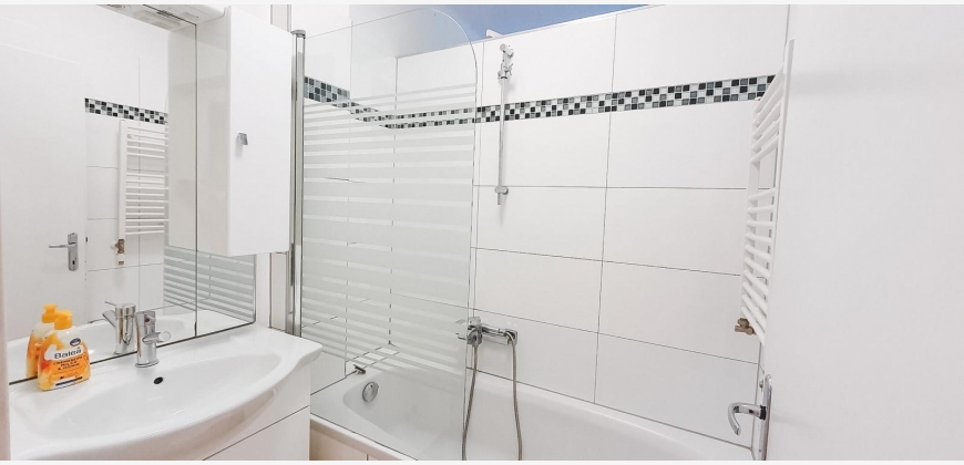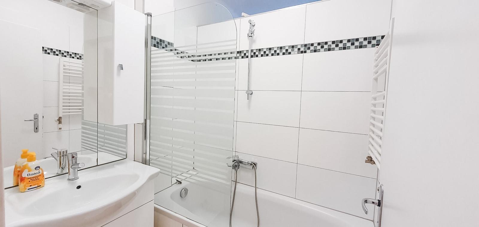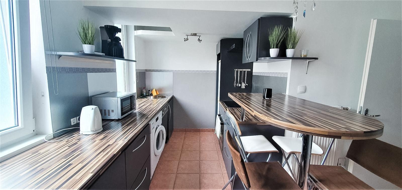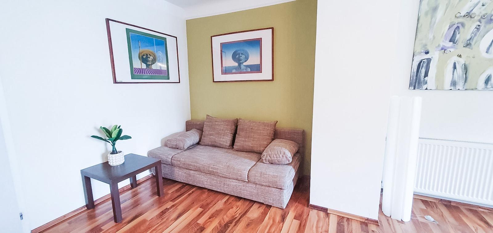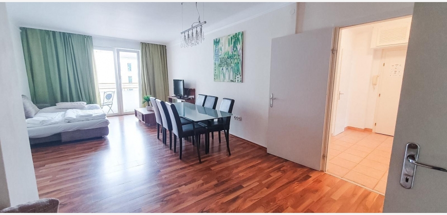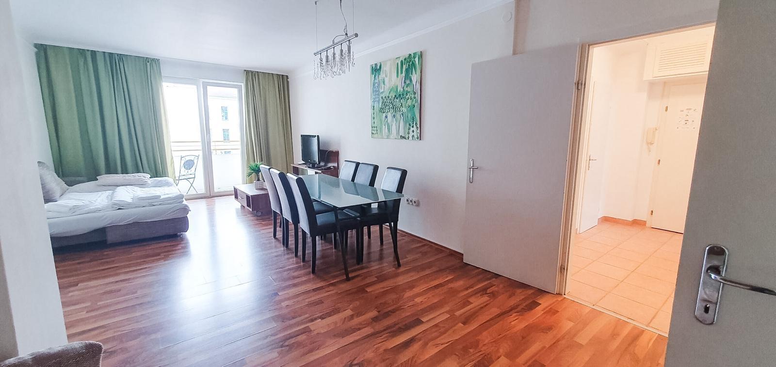 Ein Schlafzimmer, großes Wohnzimmer mit Balkon und zusätzlichen Schlafgelegenheiten, Vorzimmer, komplett ausgestattete Küche, Bad mit Wanne und separatem WC