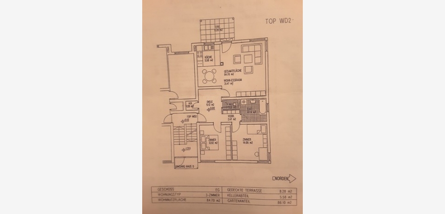 Dreizimmerwohnung ca. 85m2 , Garten, Tiefgaragenabstellplatz, Kellerabteil, ab sofort zu vermieten.