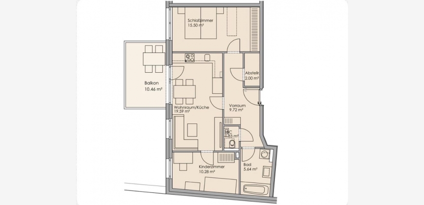 es einen Tiefgaragenstellplatz. Ein kleiner Spielplatz ist im Gebäude vorhanden. Die Wohnung wäre auch für eine WG möglich.