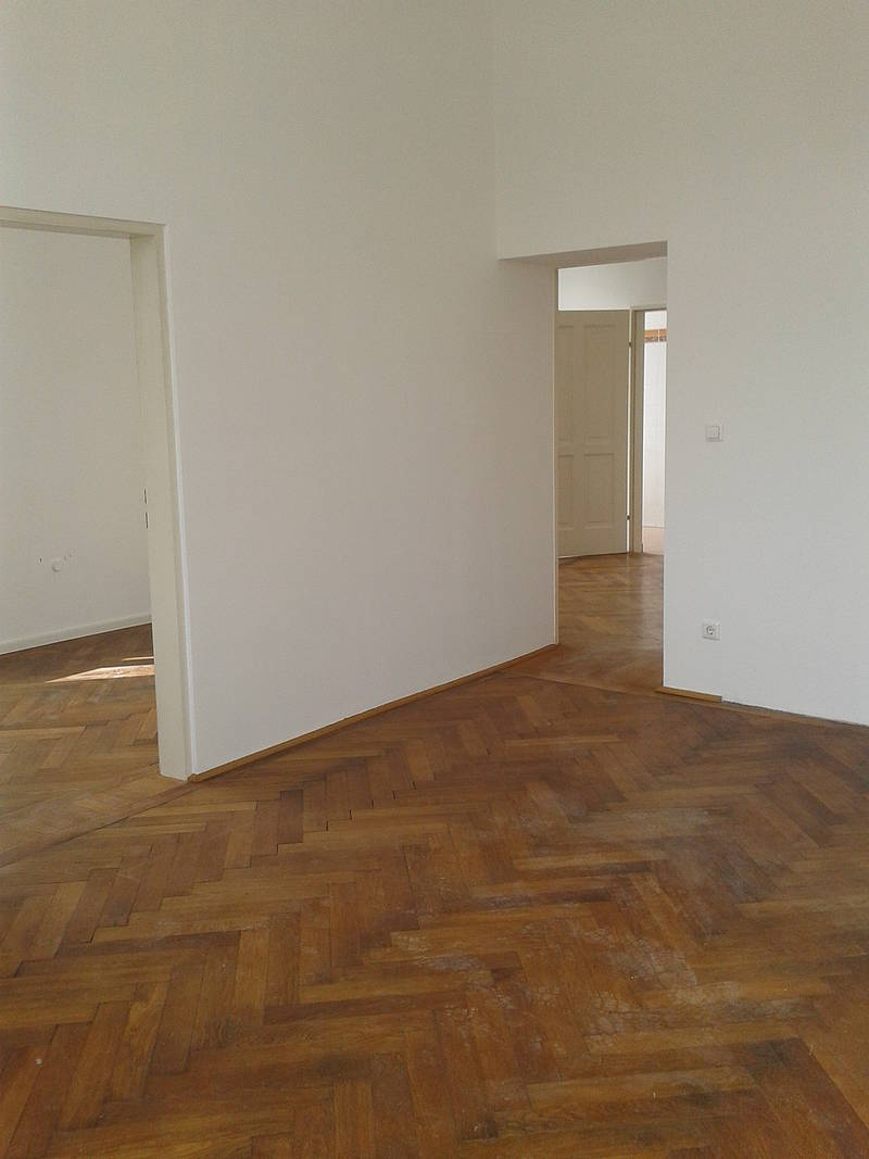 Vorraum, WC, Bad mit Eckbadewanne, Küche, Zimmer 1 (ca. 21m²), Zimmer 2 (ca. 16m²), Zimmer 3 (ca. 12m²), Kellerabteil, Küchenzeile, Parkettböden, Gas-Etagenheizung, Wohnraumlüftung mit Wärmerückgewinnung, unbefristete Vermietung.