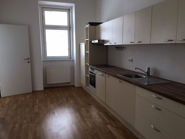 Renovierte Altbauwohnung mit Vorzimmer, großer komplett eingerichtete geräumiger Küche (eventuell als Wohnküche möglich bei WG) Backrohr, Geschirrspüler, großer Kühlschrank, 2 Zimmer (getrennt begehbar), Bad mit Dusche und WC und Waschmaschinenanschluss.