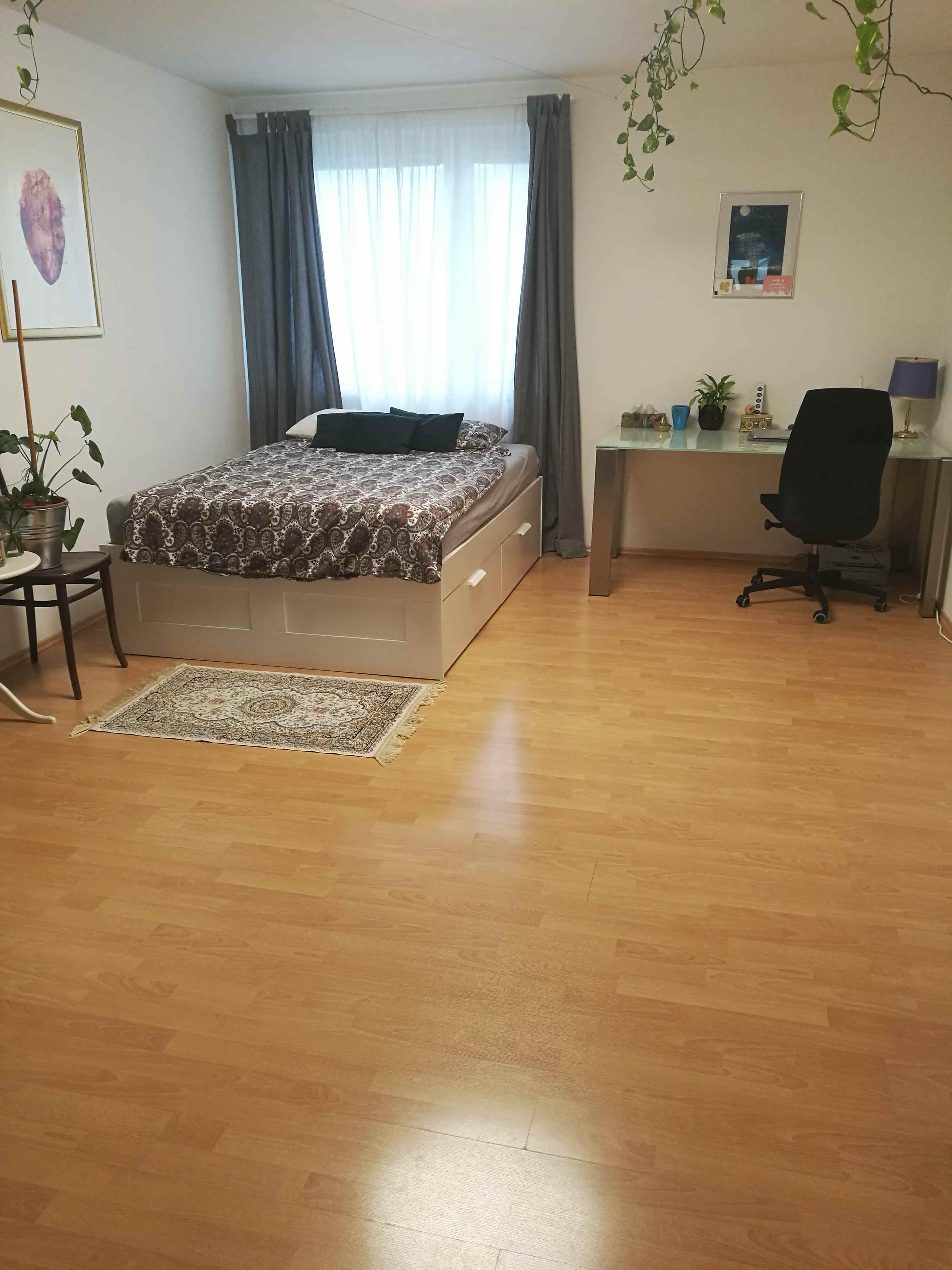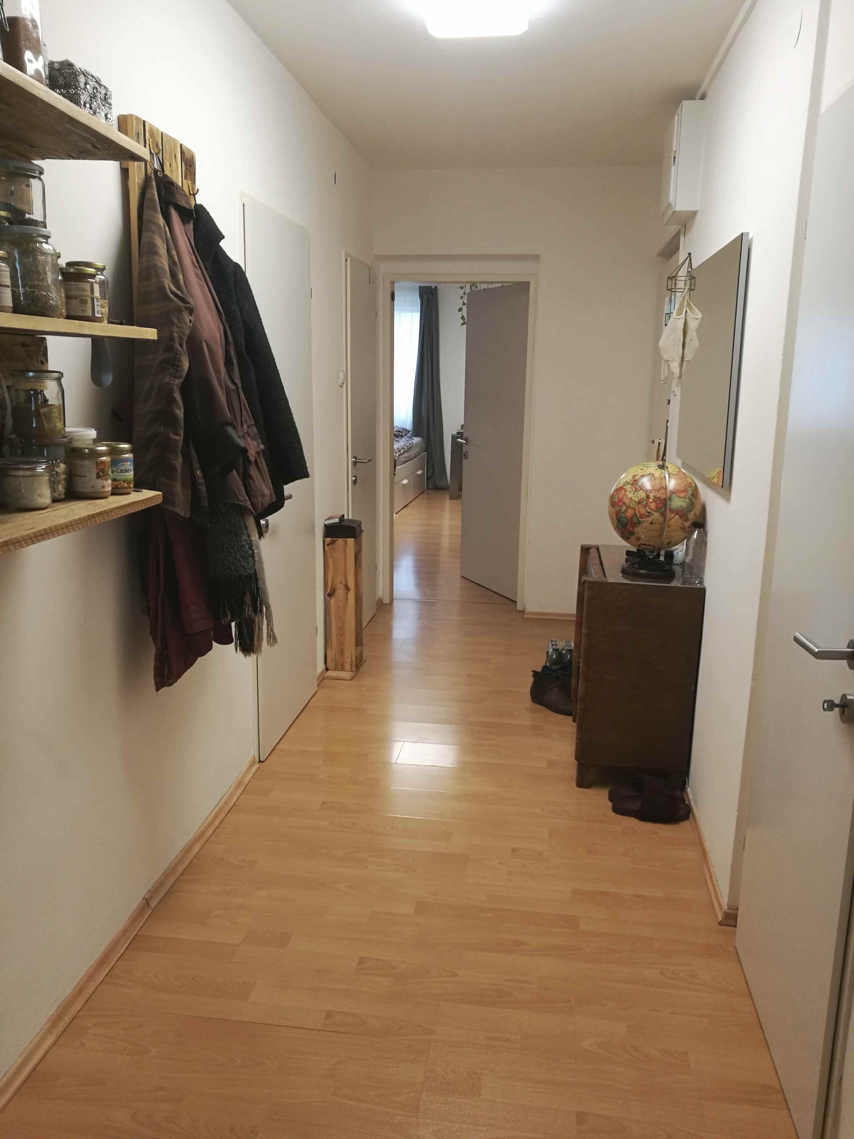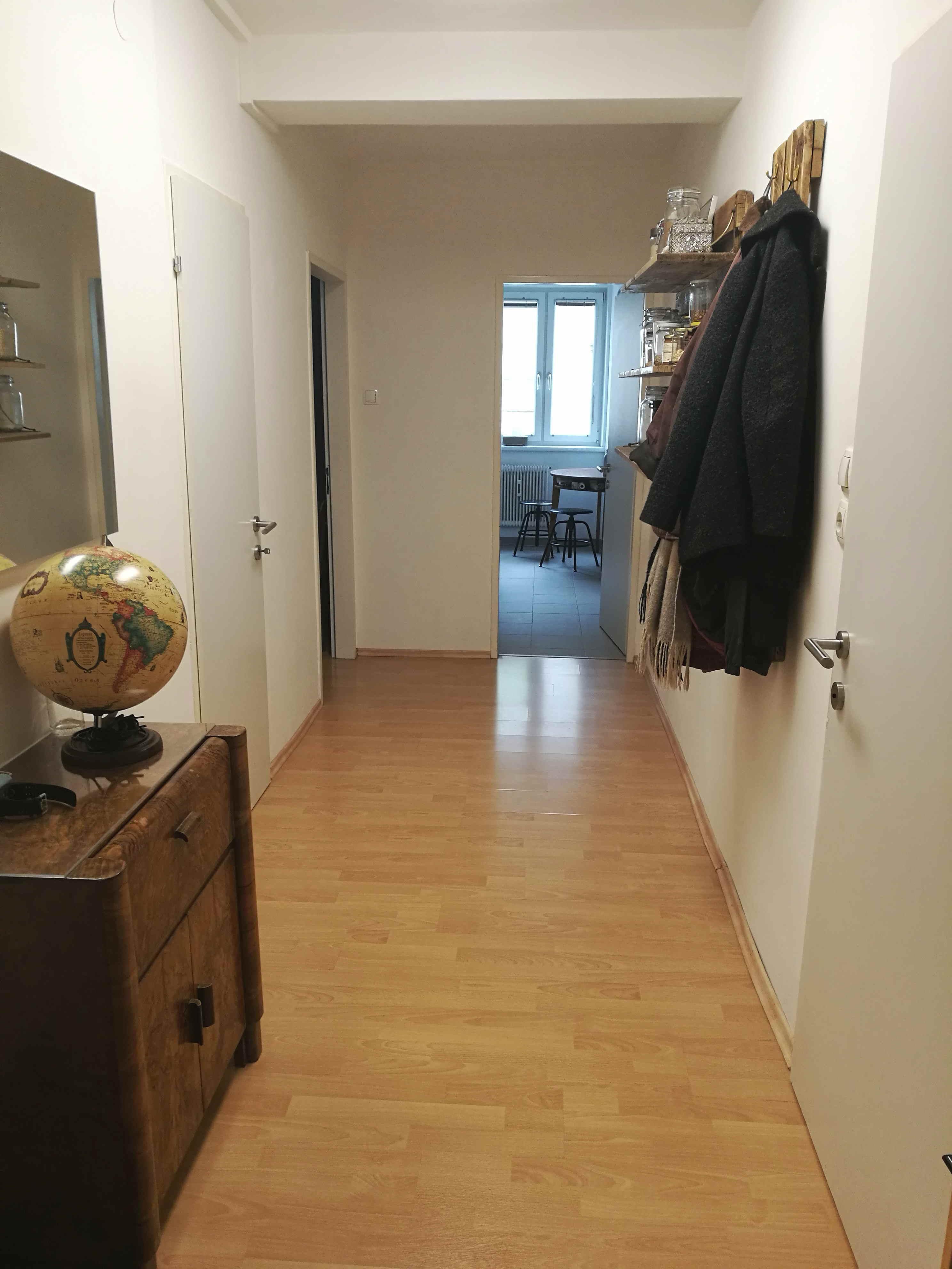 Die Wohnung eignet sich sowohl für Einzelpersonen als auch für Wohngemeinschaften oder Paare. Sie besteht aus 2 großen getrennt begehbaren Zimmern. Vom geräumigen Flur gelant man außerdem in die Küche, das Bad, die Abstellkammer und das separate WC.