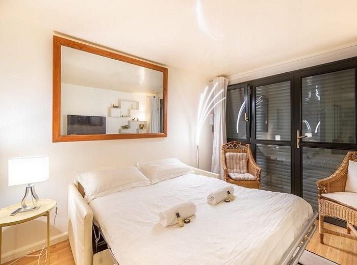 Schönes möbliertes Studio in einer schönen Wohnanlage mit einem möblierten Wohnzimmer mit doppelt verglasten Fenstern