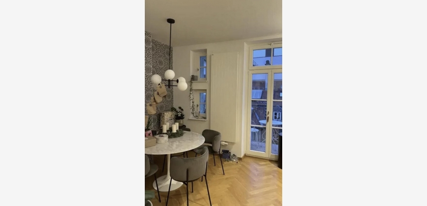 Die Wohnung vereint den typischen Charme eines Altbaus (z. B. Parkettboden, Stuckdecken) und wurde vor wenigen Jahren vollständig renoviert und modernisiert. Dabei wurde besonders auf hochwertige Materialien geachtet. Im Schlafzimmer finden sich maßgeschneiderte Schränke sowie individuell angefertigte Vorhänge. Der Rest der Wohnung wird unmöbliert vermietet. Die Vermietung erfolgt auf 5 Jahre befristet. Verlängerungsmöglichkeit garantiert.