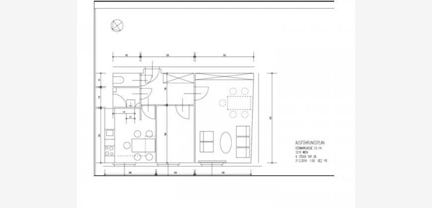 Die Wohnung liegt im 4. Liftstock eines gepflegten und sanierten Neubaus in einer ruhigen Wohnstraße. In Gehdistanz (5 Minuten) befinden sich die U-Bahn- bzw. S-Bahn-Station Floridsdorf sowie das Erholungsgebiet Alte Donau.