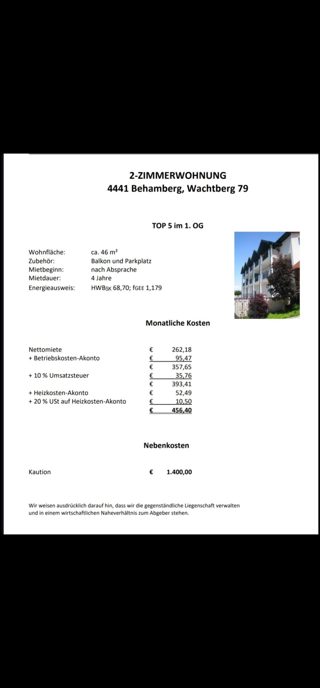 Gesamtmiete (inkl. Betriebskosten): 495 € (ohne Strom). Die Betriebskosten wurden letzten Sommer erhöht, weshalb der Betrag vom Bild abweicht.