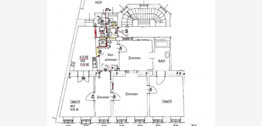 103 m² Altbauwohnung, provisionsfrei - 4,5 Zimmer + geräumige Küche- 2 Badezimmer- Guter Zustand (vor drei Jahren renoviert - neue Küche, neue Therme, neue Böden, etc.) - 2. Stock mit Lift - unbefristet - Miete (inkl. Ust + BK): € 888 8 8 MM Kaution
