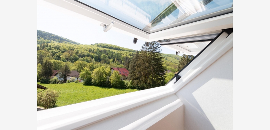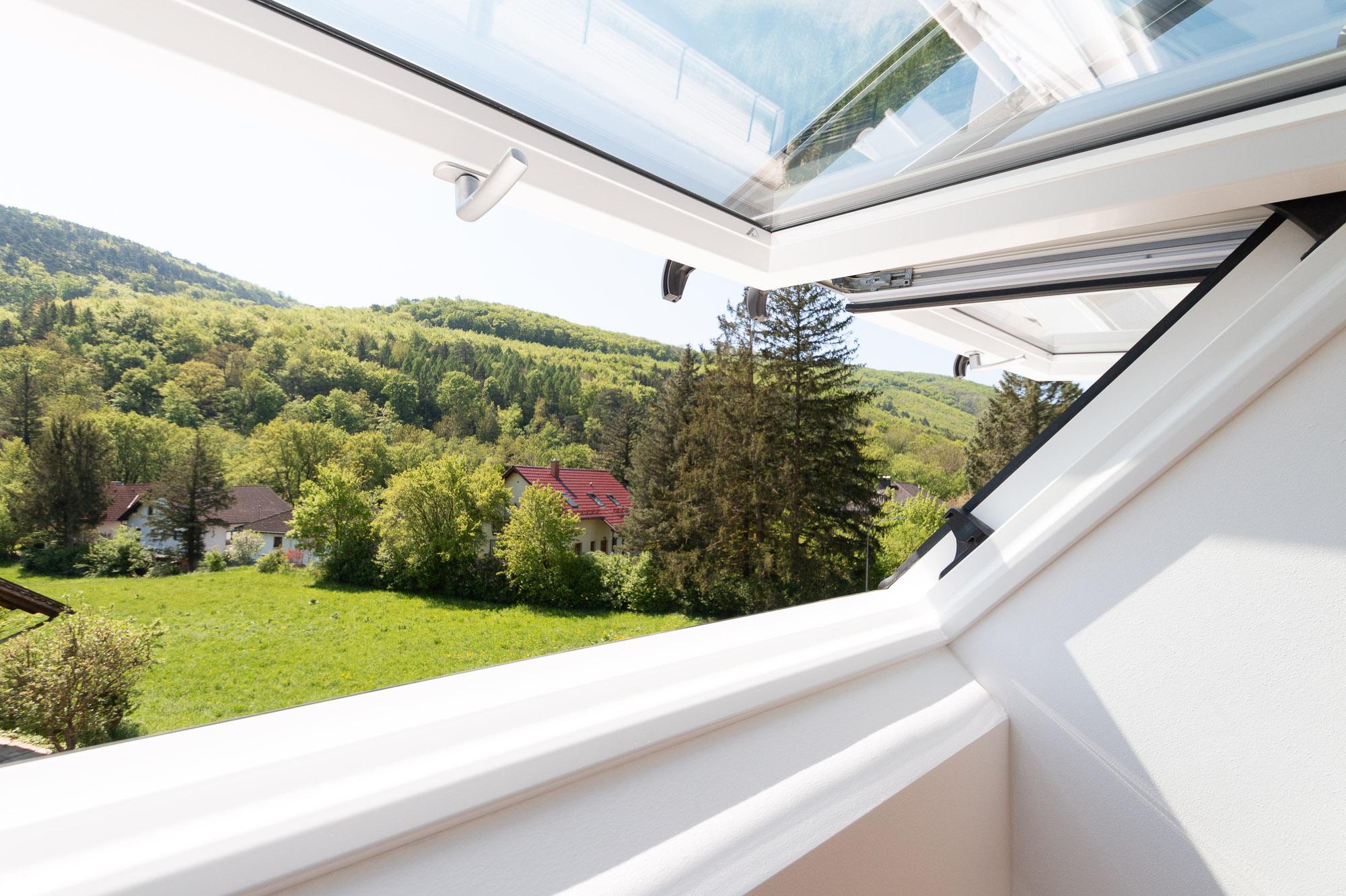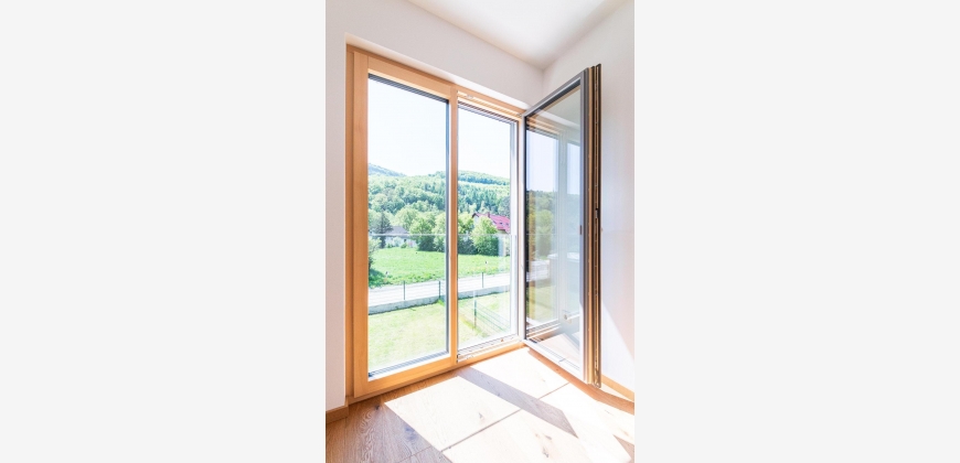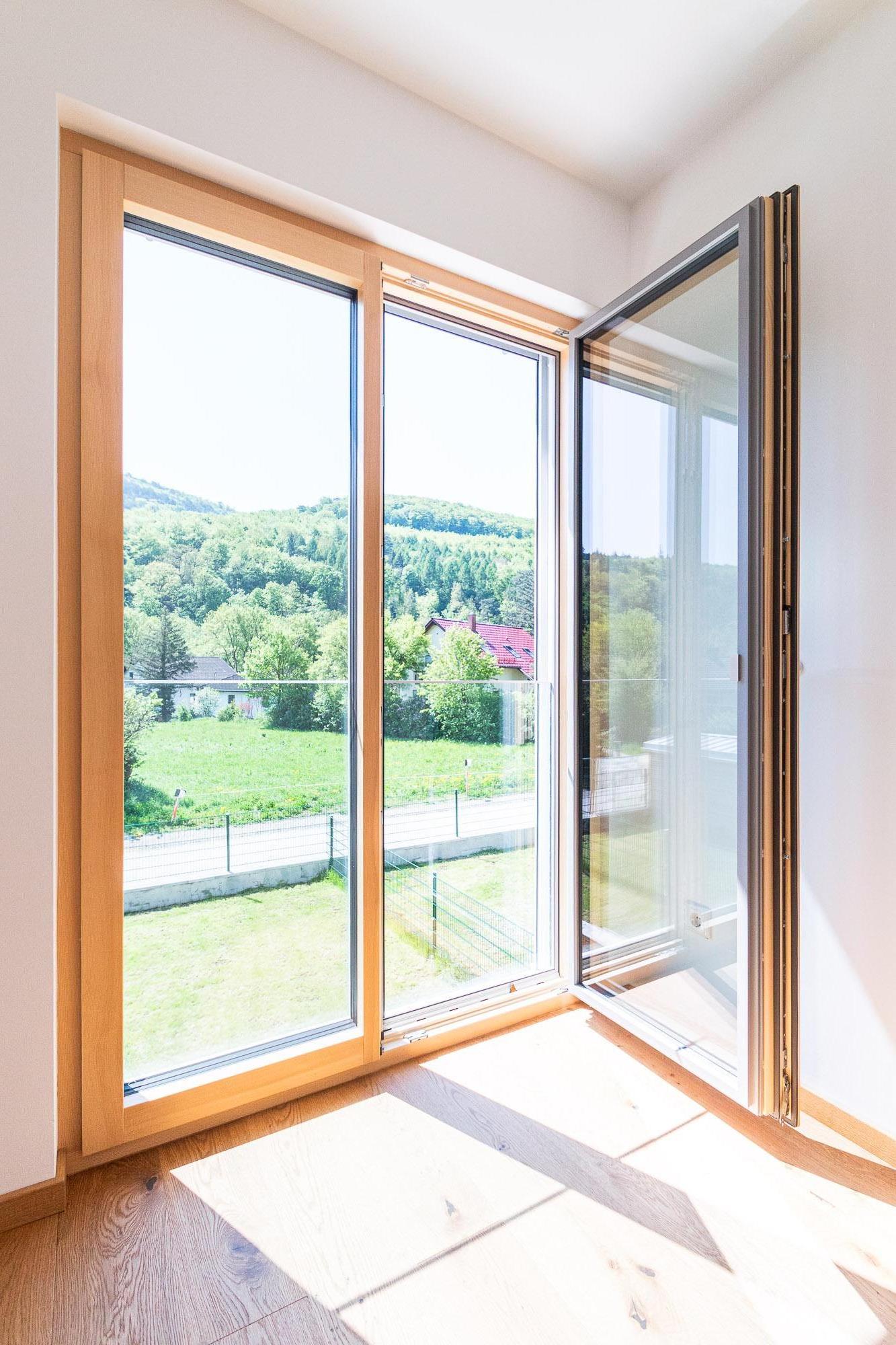 Großzügige Holz-Alu-Fenster mit 3-Scheiben-Wärmeschutzverglasung und hohen Schallschutzwerten