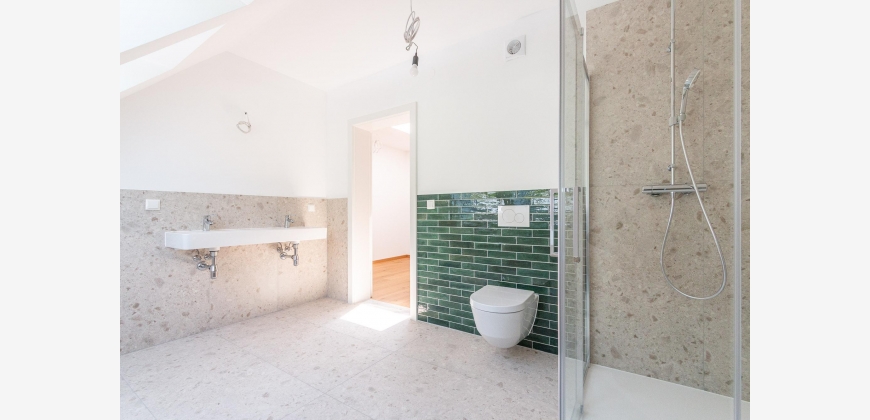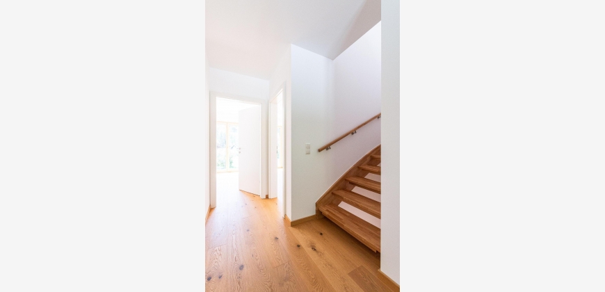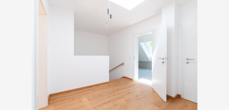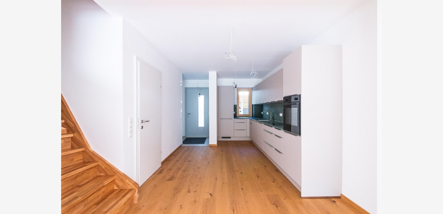 Das Reihenhaus überzeugt durch helle, großzügig gestaltete Wohnräume auf drei Etagen. Sämtliche Bau- und Außenanlagen wurden von uns bezugsfertig hergestellt. Hochwertige Ausstattungsdetails wie die Eichen-Holzinnenstiege, Estrich mit Fußbodenheizung, Holz-Alu-Fenster und Terrassentüren mit 3-fach-Wärmeschutzverglasung und ausgezeichneten Schallschutzwerten, elektrische Außenrollos, edler Scheucher-Eichenparkett in Landhausdielen, Röhrenspankern-Innentüren von Dana, moderne Marken-Sanitäranlagen sowie italienische Designer-Feinsteinzeugfliesen sind bereits inkludiert. Ein eigener Kaminanschluss für einen Schwedenofen ist ebenfalls vorhanden.
