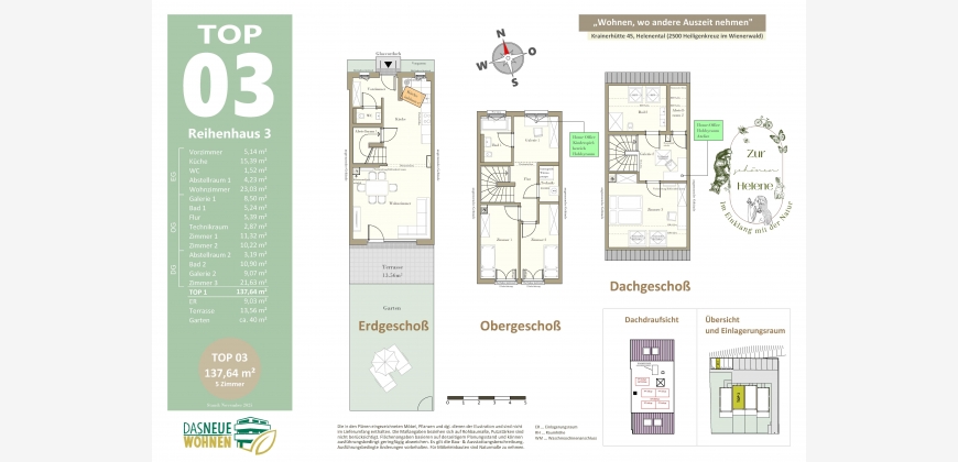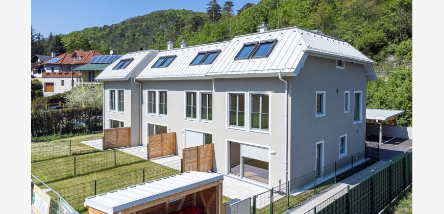 Im wunderschönen Helenental im Biosphärenpark Wienerwald, nur wenige Minuten von Baden entfernt, wurden kürzlich 4 exklusive und moderne Architekten-Reihenhäuser in Niedrigstenergiebauweise fertiggestellt. Die moderne und ökologische Ausstattung vereint stilvollen Wohnkomfort mit natürlicher Lebensqualität. Helle Wohnräume und durchdachte Grundrisse machen die Reihenhäuser zu Ihrer ganz persönlichen Wohlfühloase. Alle Objekte verfügen über südseitige Freiflächen.