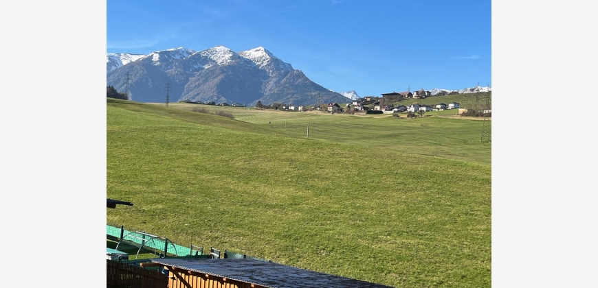 Zum Haus gehört ein großes Grundstück mit 1775 m² (2 Parzellen). Die Nordwestseite bietet am eigenen Grundstück eine Nadelbaumreihe und einen traumhaften Blick über grüne Wiesen und Hügel, eingerahmt von den nahegelegenen Bergen.