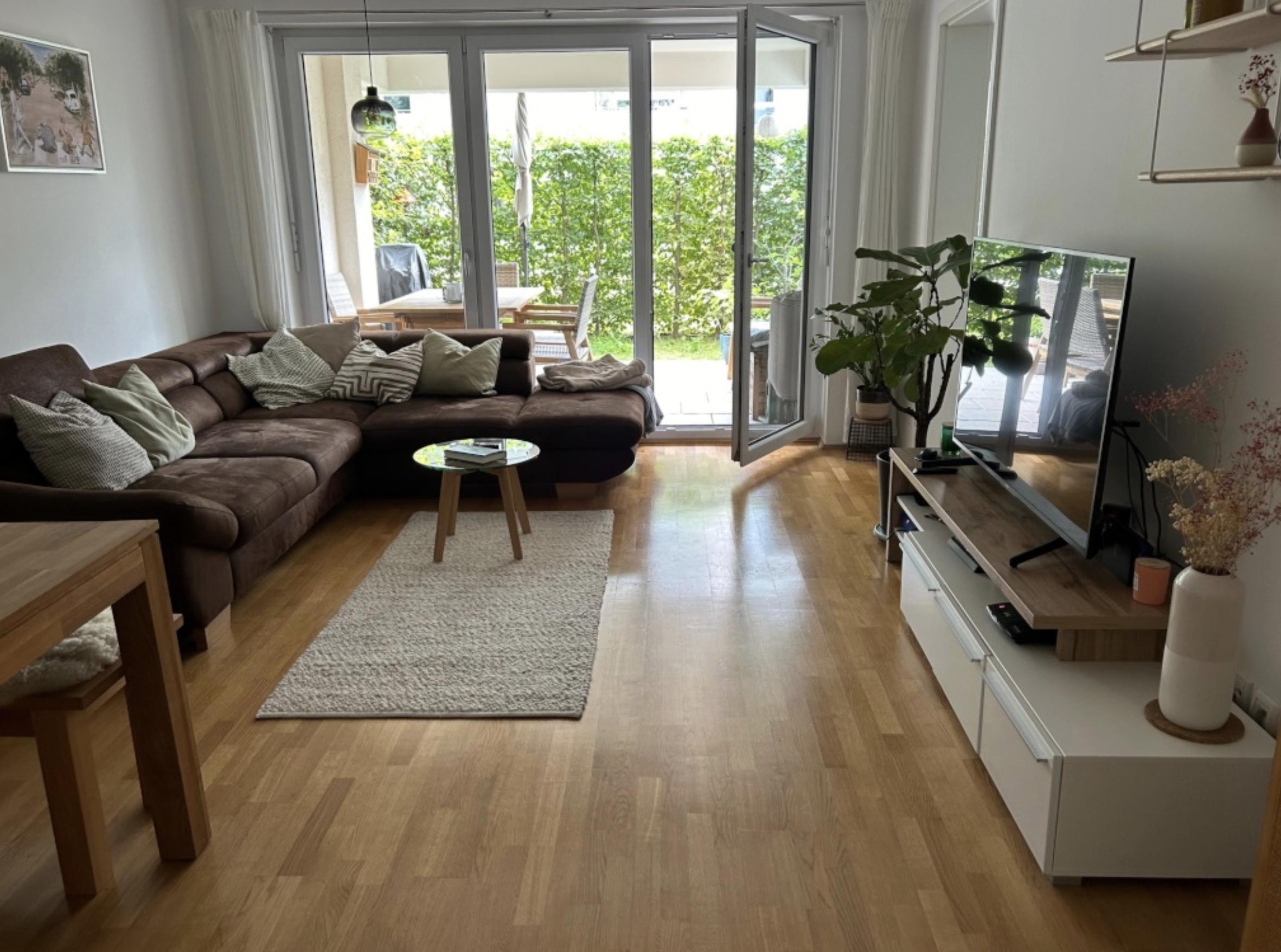 Diese geräumige Wohnung besticht durch ein großes Wohnzimmer, das sowohl einen Wohn- als auch einen Essbereich bietet und direkten Zugang zum charmanten Garten mit Terrasse ermöglicht.