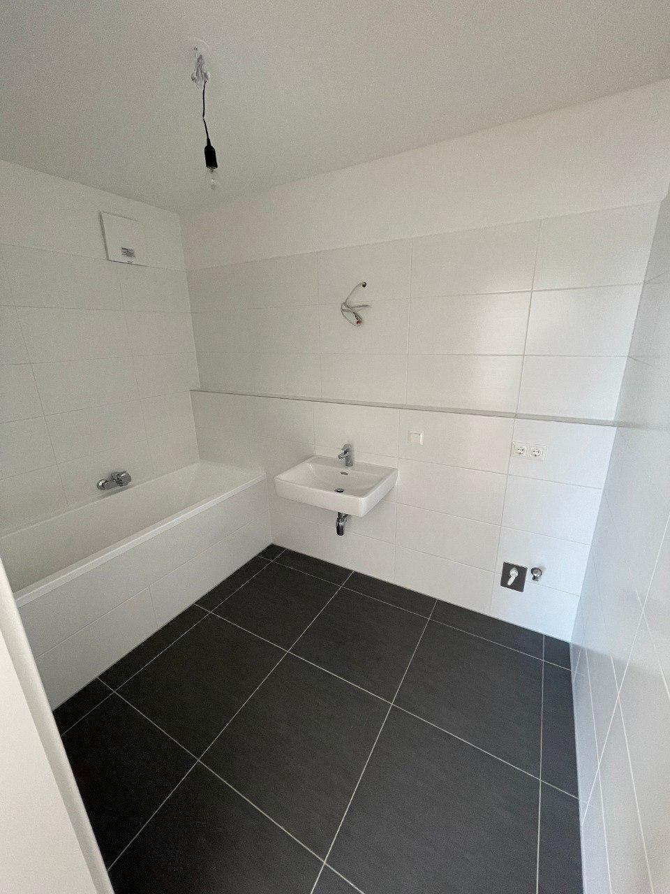 Bad mit Badewanne, Waschbecken, Handtuchheizkörper und Waschmaschinenanschluss