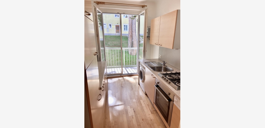 Die helle Wohnung besteht aus Wohnzimmer, Schlafzimmer, Küche, Vorraum, WC, Badezimmer mit Badewanne, 3,6m2 Balkon südseitig,Grünruhelage, Kabelanschluss für Kabel TV, A1 - Internetanschluss,