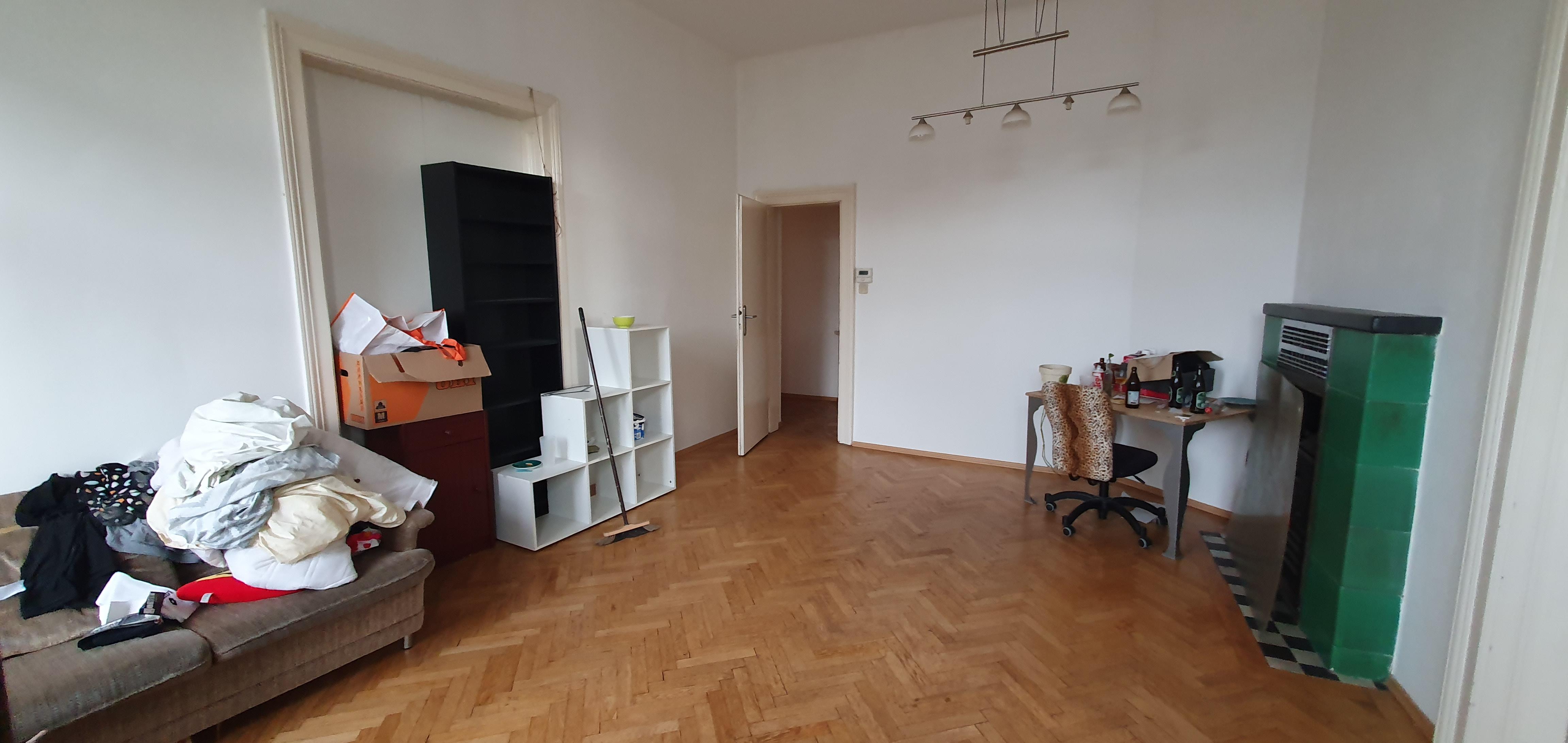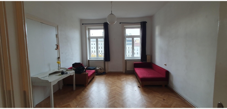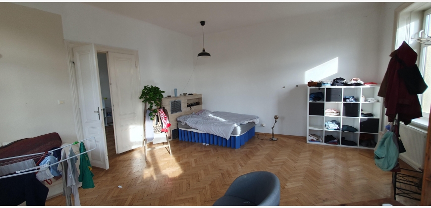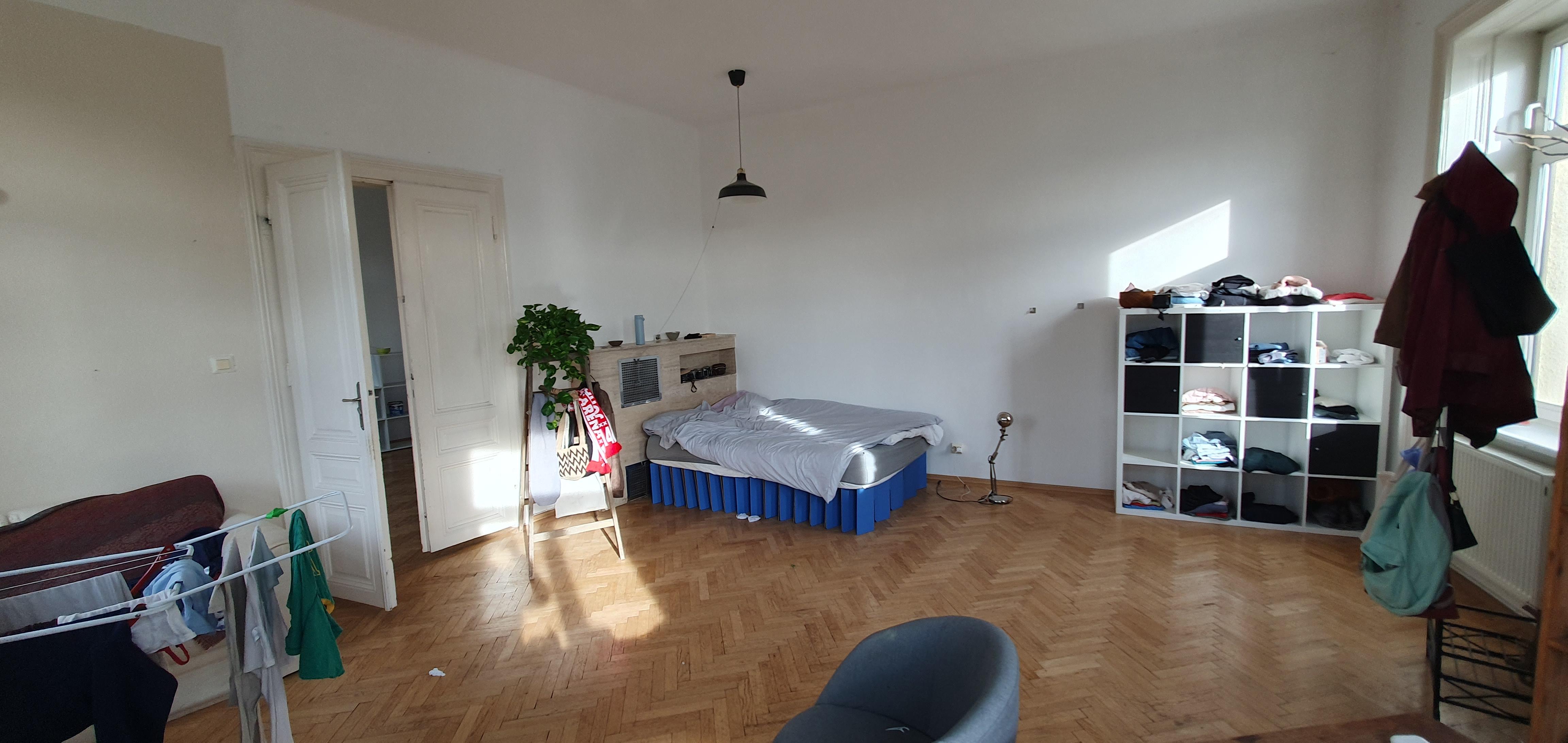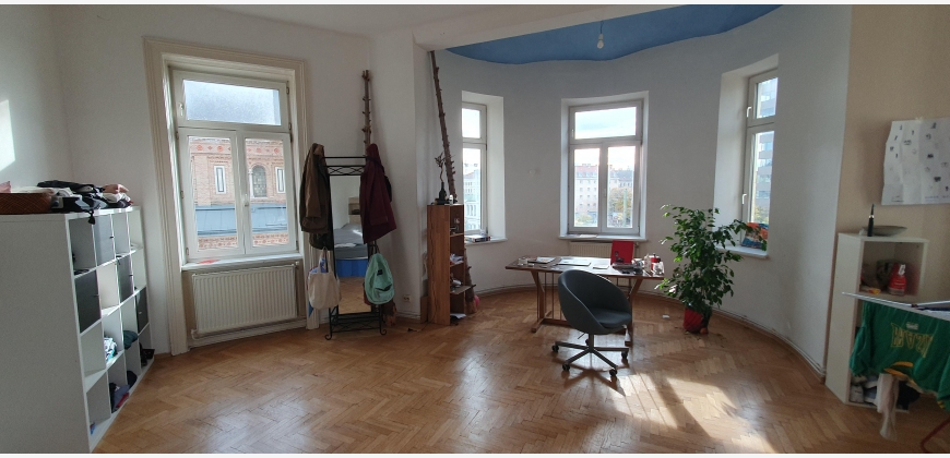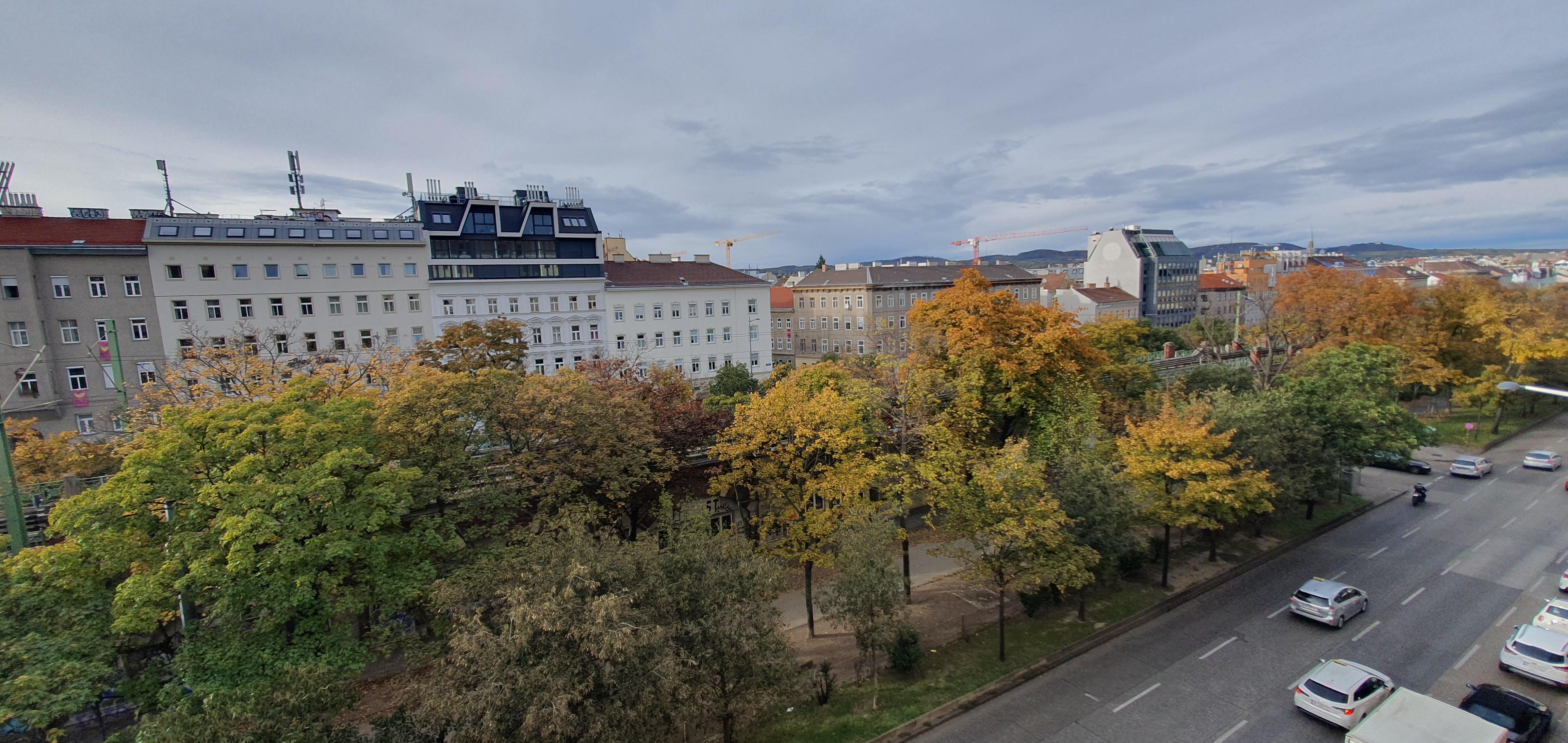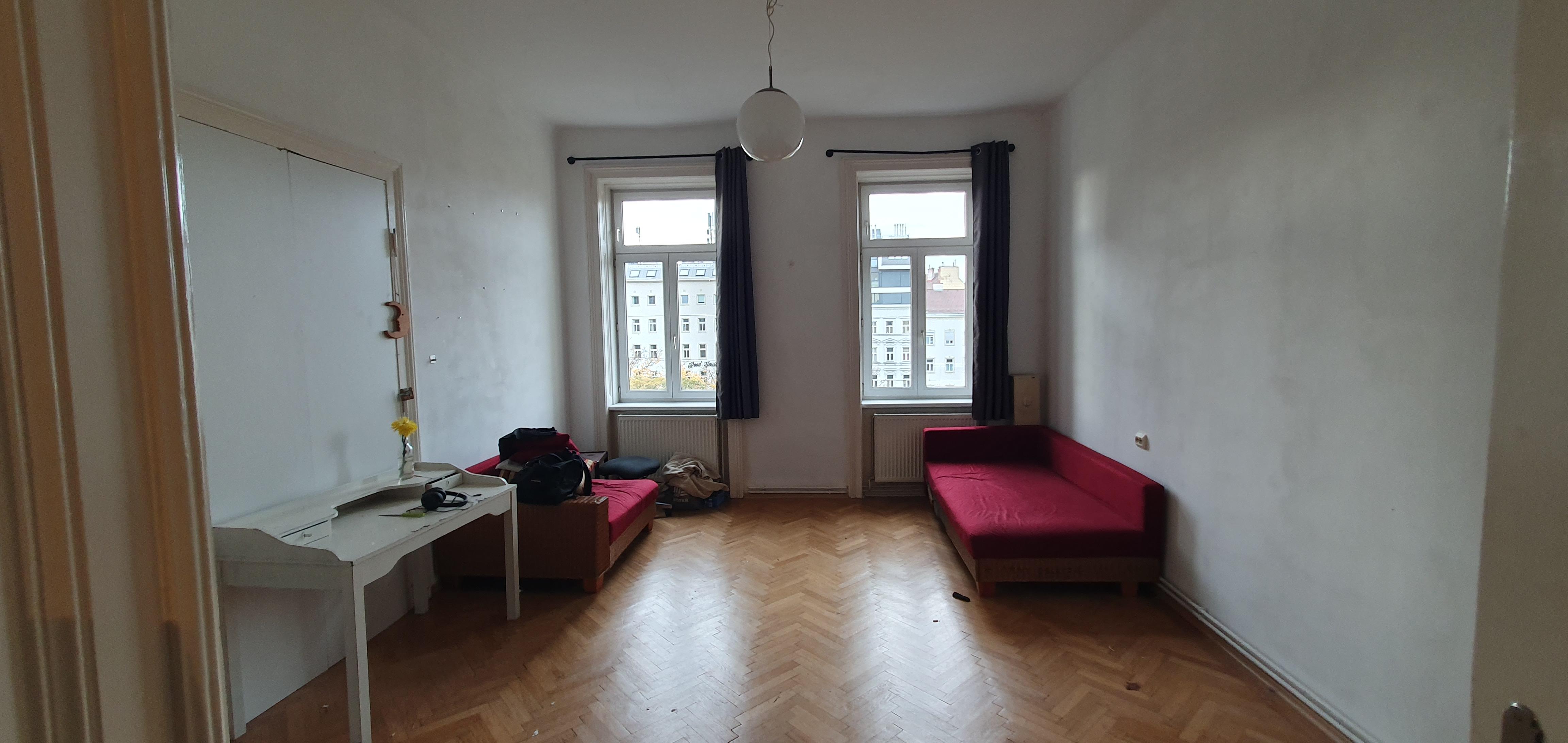 Das zweite Zimmer ist mit seinen knapp 25m^2 ebenfalls sehr geräumig und bietet auch hier durch seine großen Fenster ein helles Ambiente mit Blick über Wien und den Gürtel.